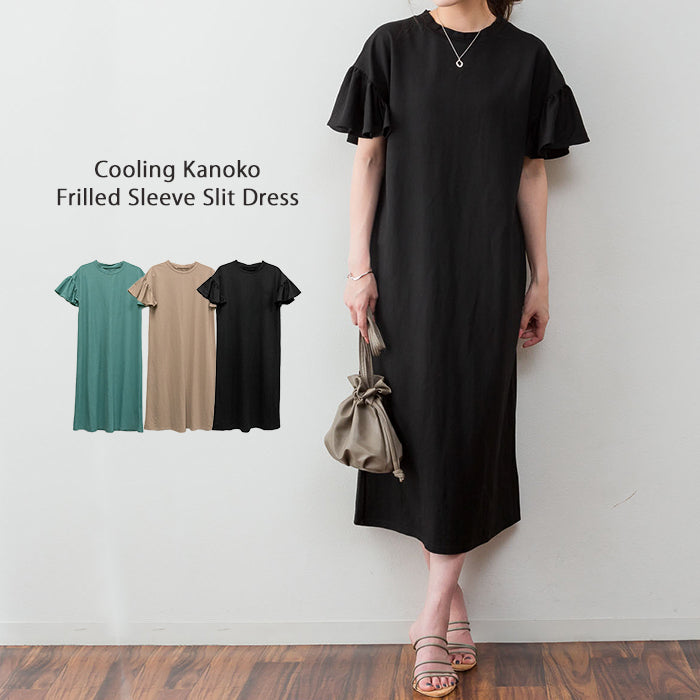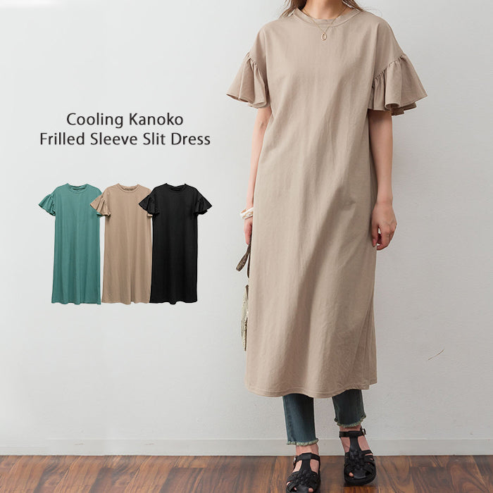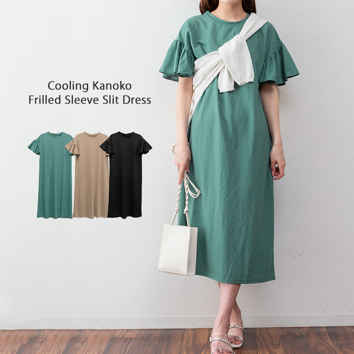 冷感カノコ生地でひんやり快適な着心地のワンピース。