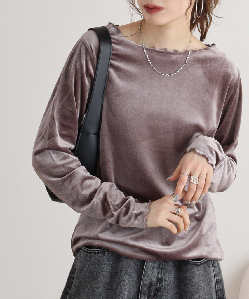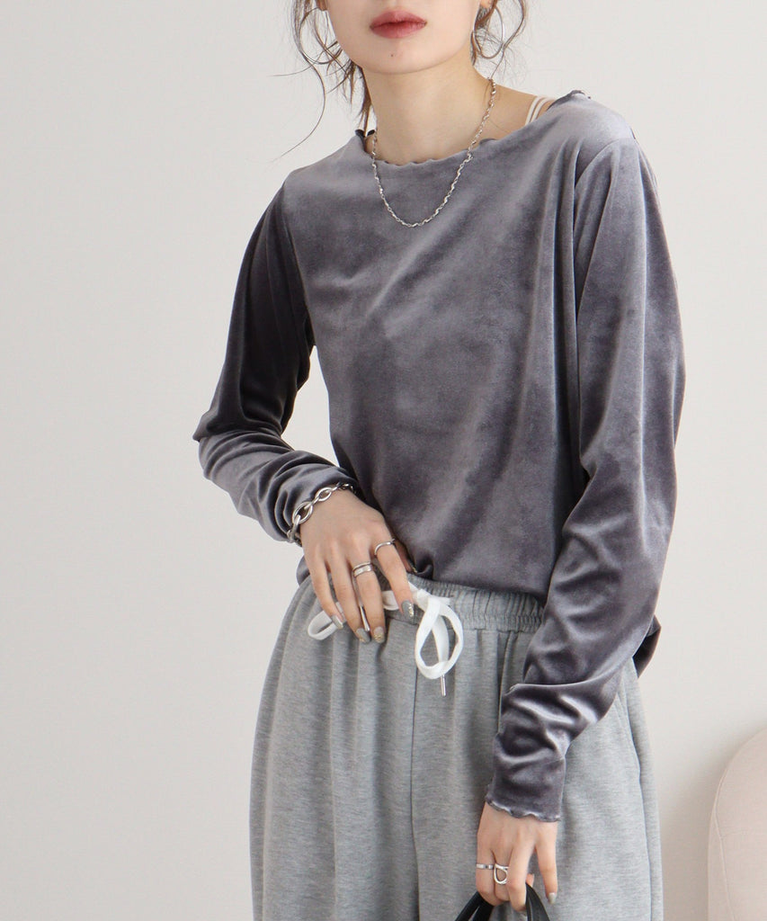 カットベロアメロークルーネックロンT