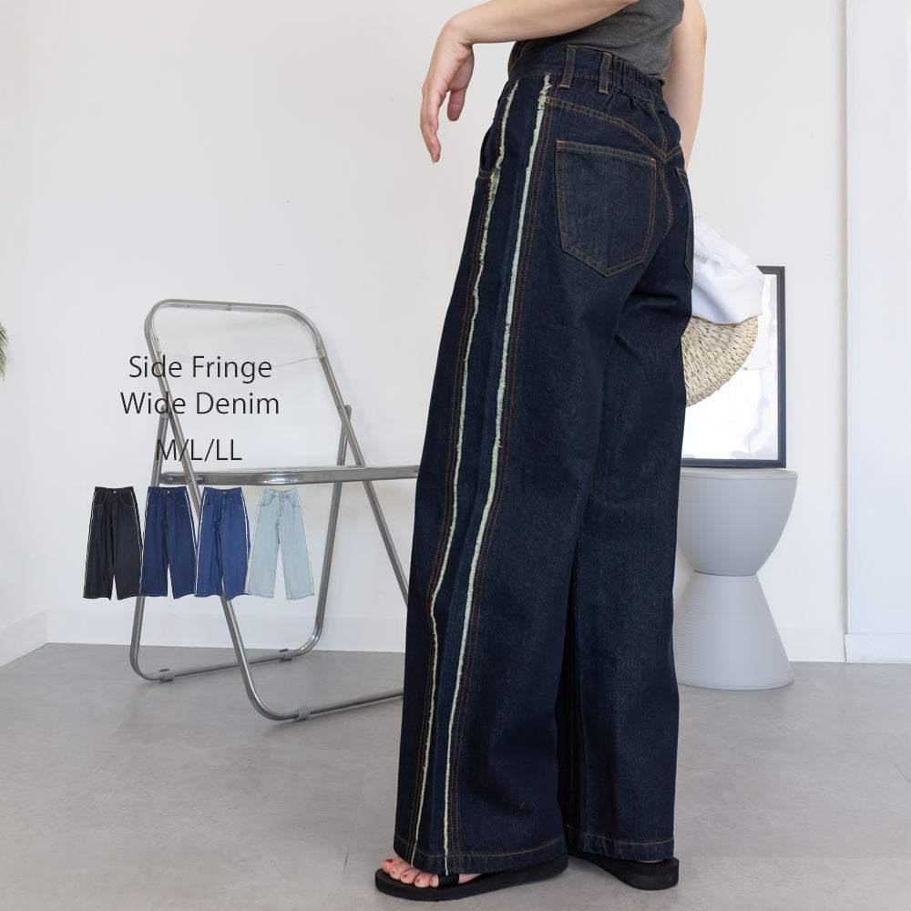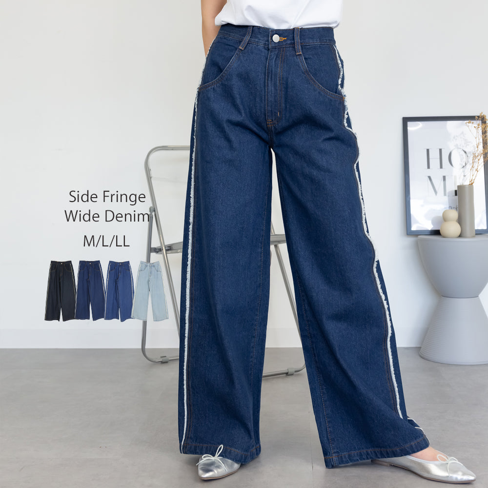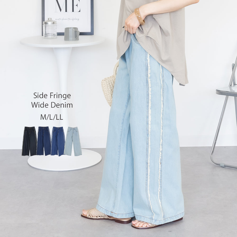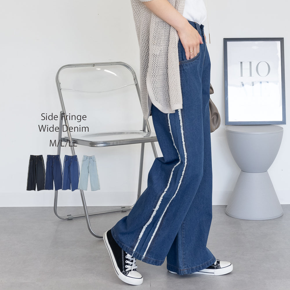 大胆なサイドフリンジが目を引く「サイドフリンジワイドデニム」は、こなれ感とトレンド感を兼ね備えた1本。