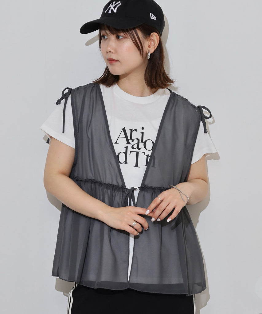 シフォンベスト+天竺AラインシルエットTシャツアンサンブル