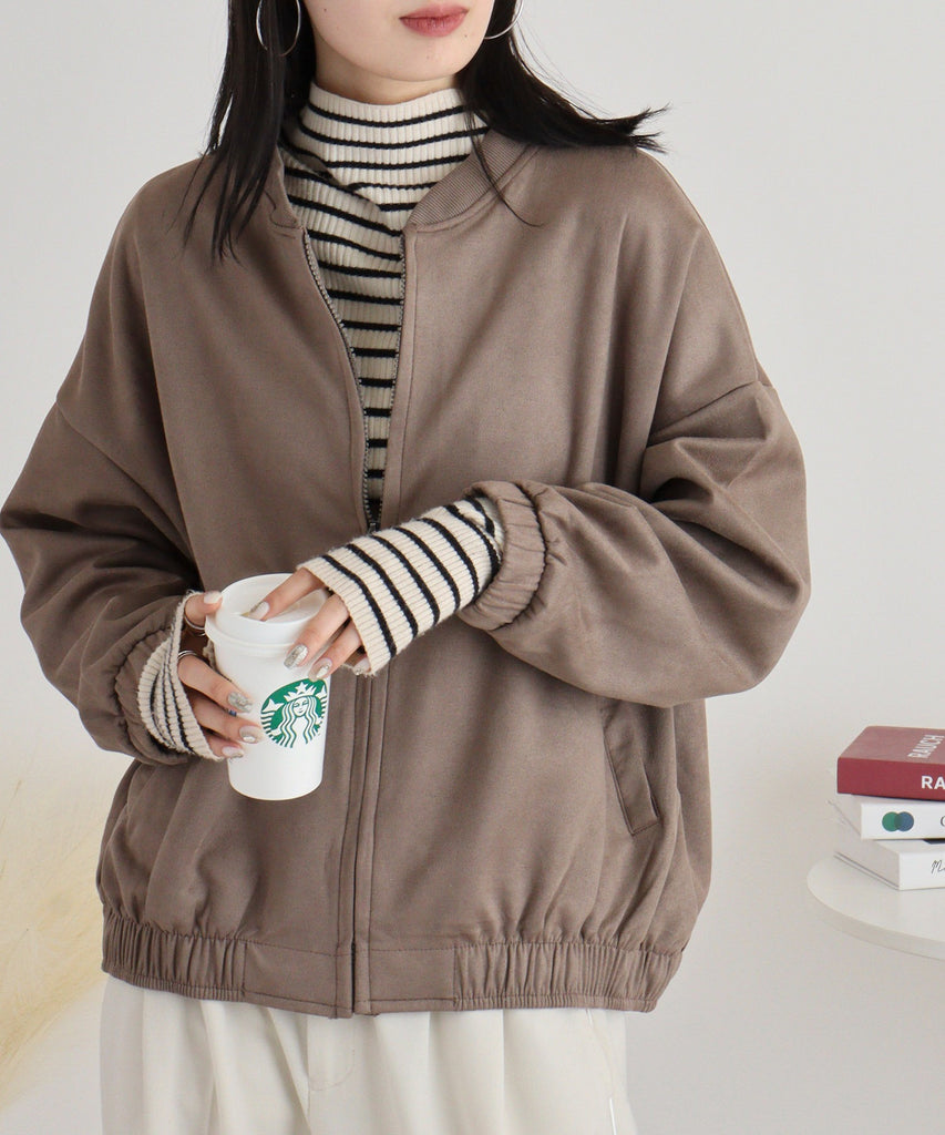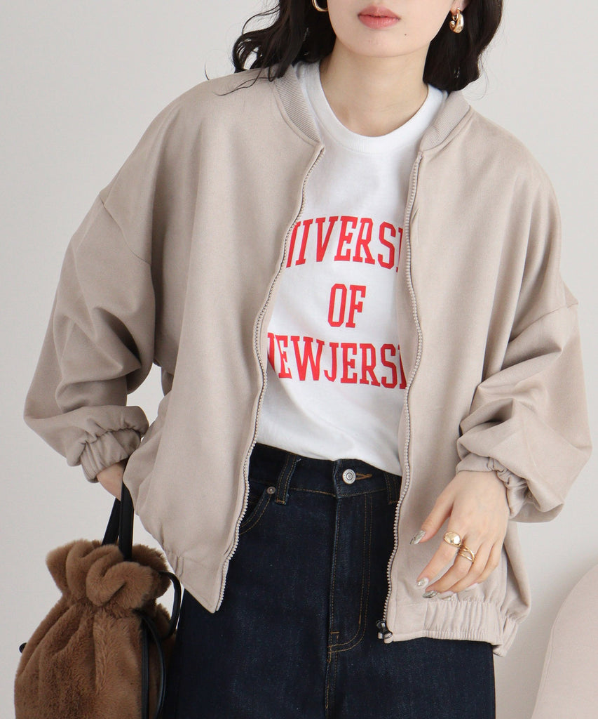 程よいハリ感と滑らかな肌触りを持つスエード調素材が魅力のMA-1ジャケット。