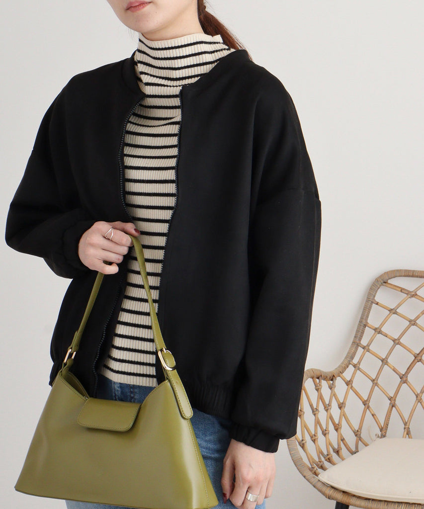 パーカーやロンT、スウェットトレーナー、タートルネックリブニットなど、さまざまなトップスの羽織として活躍。