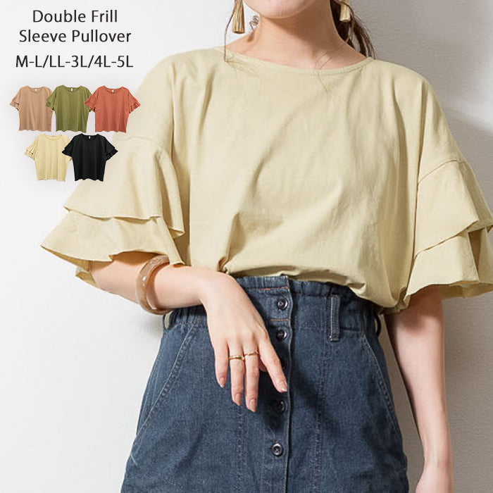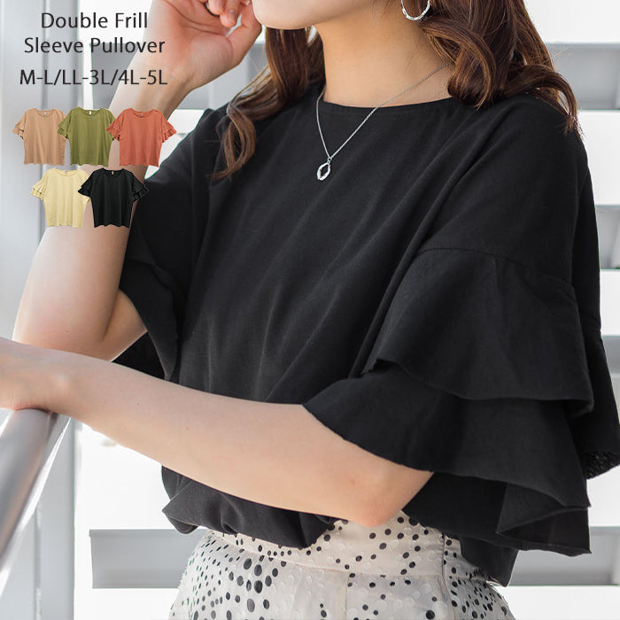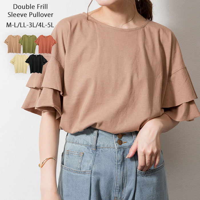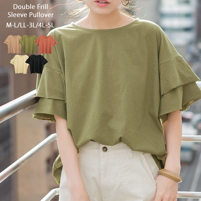 二の腕を可愛くしっかりカバーしてくれるダブルフリルスリーブプルオーバー