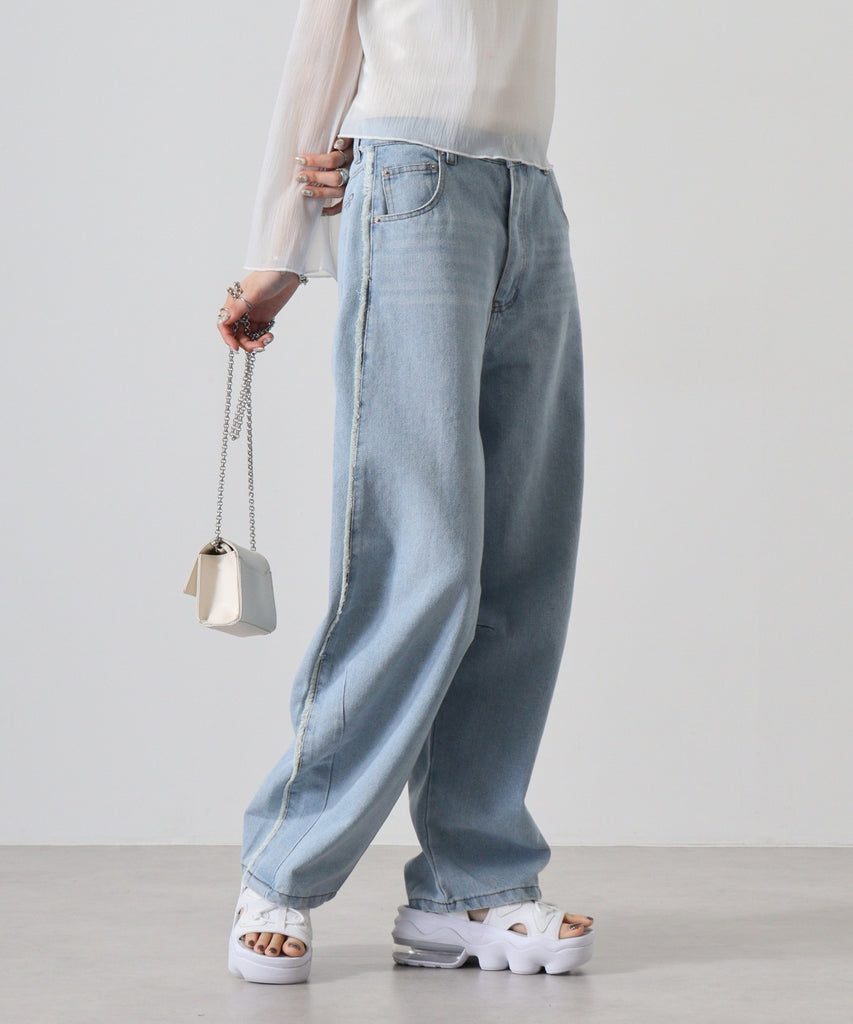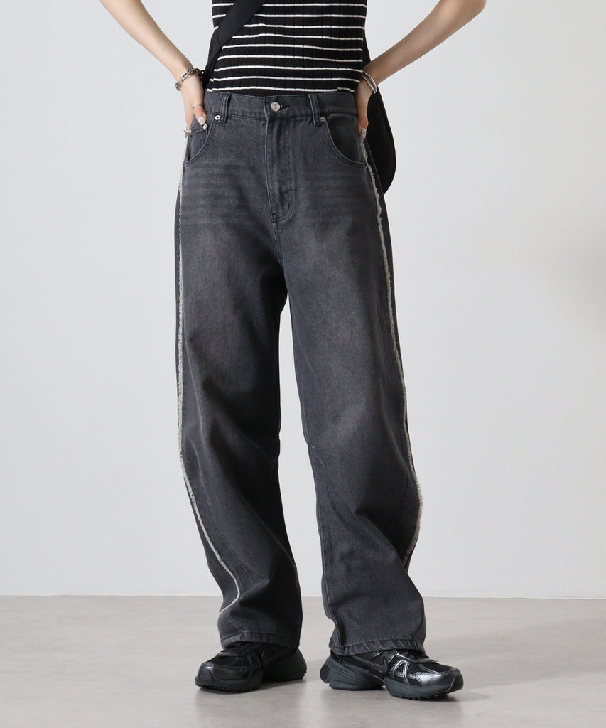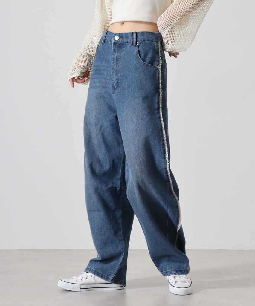 デニムサイドフリンジカーブパンツ