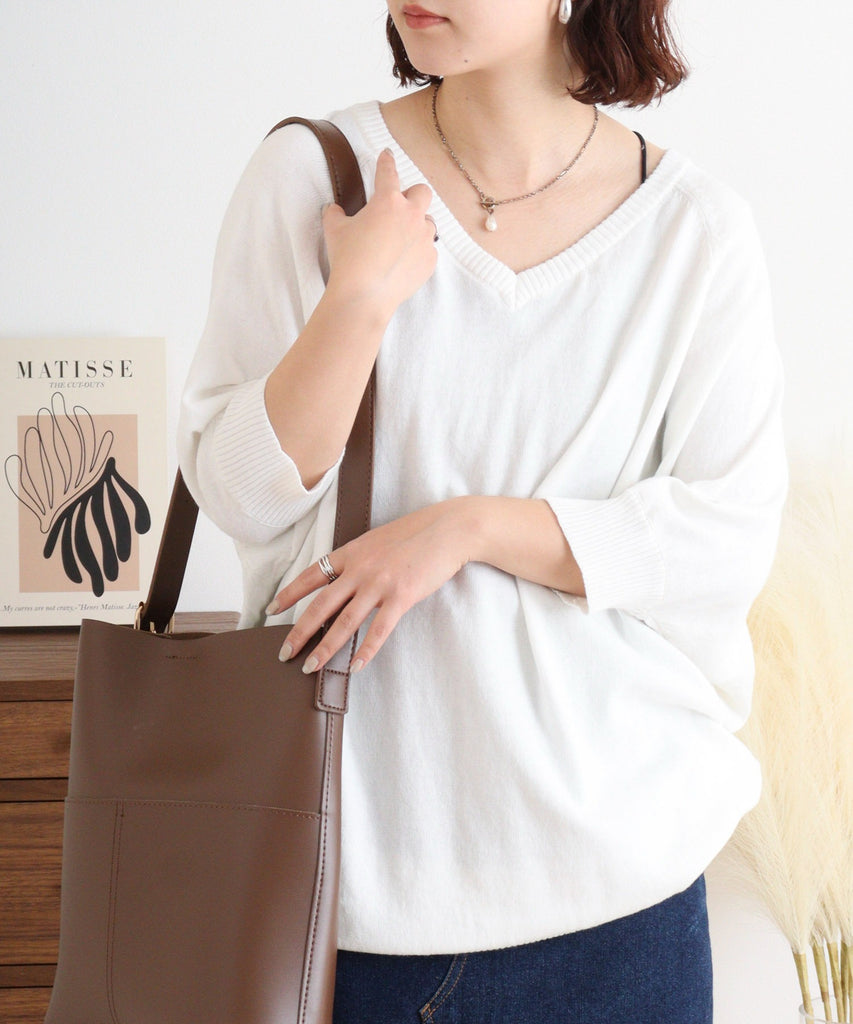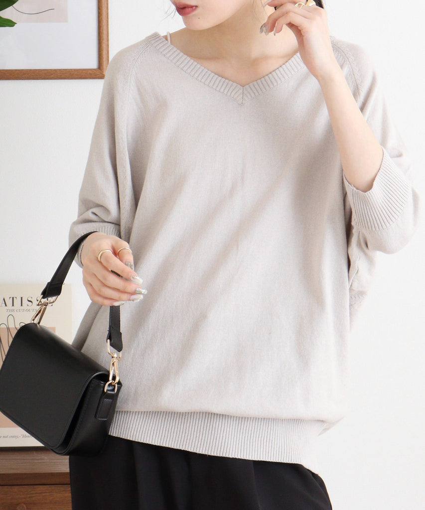 全体的にゆったりした袖感でルーズにも着れる薄手のニット。