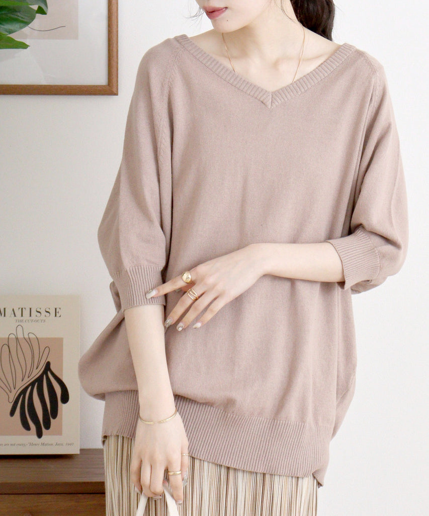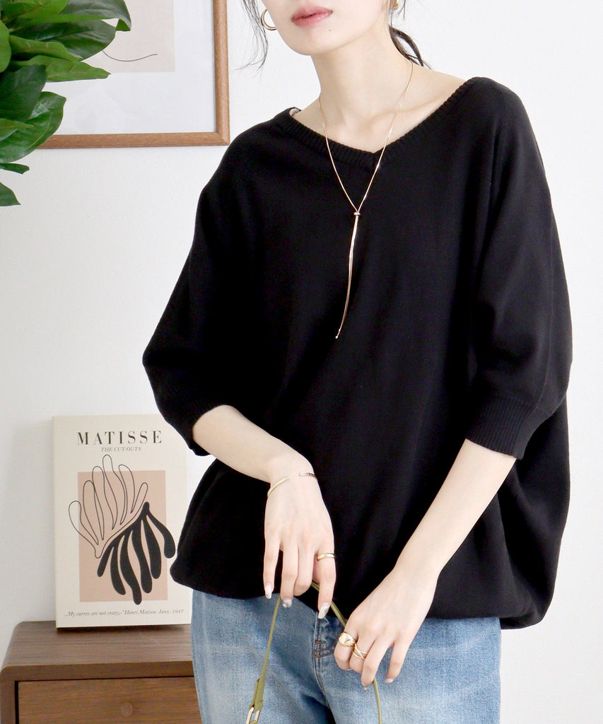 ドルマンシルエット5分袖ニット
