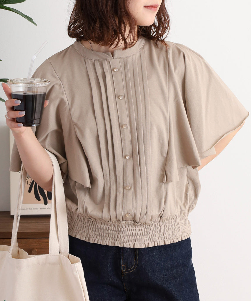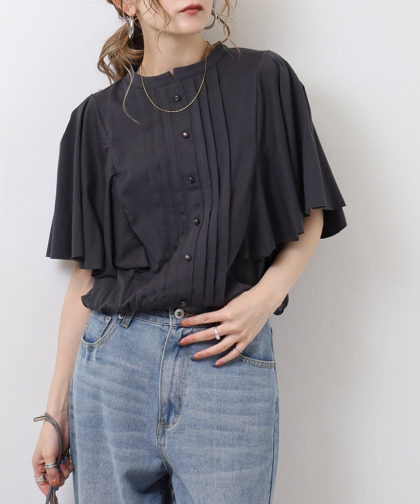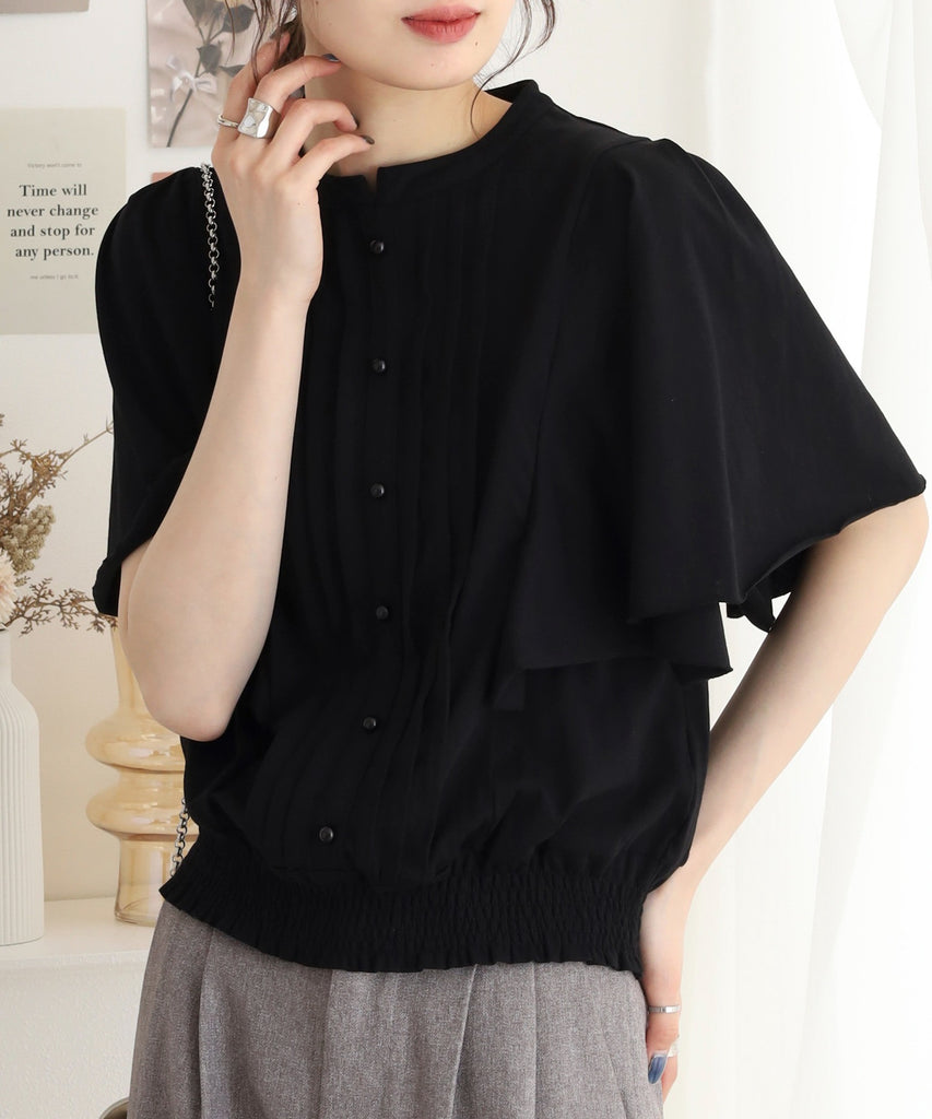 上品なピンタックとふんわり広がるフレア袖が女性らしさを引き立てる一着。