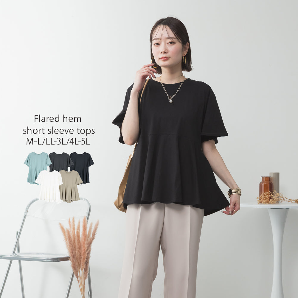 春夏にぴったりな軽やかな着心地のフレアヘムショートスリーブトップ。