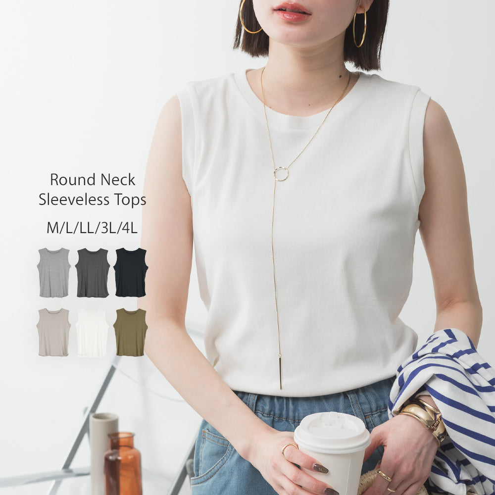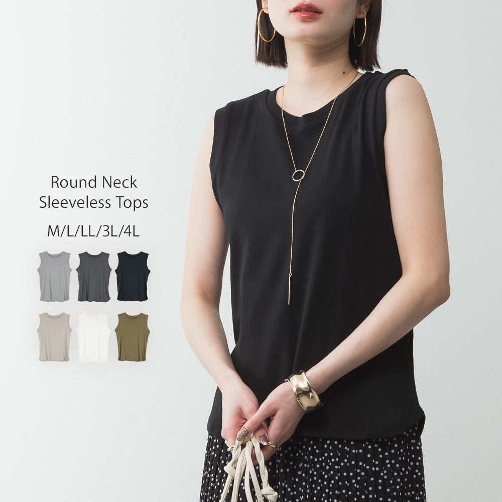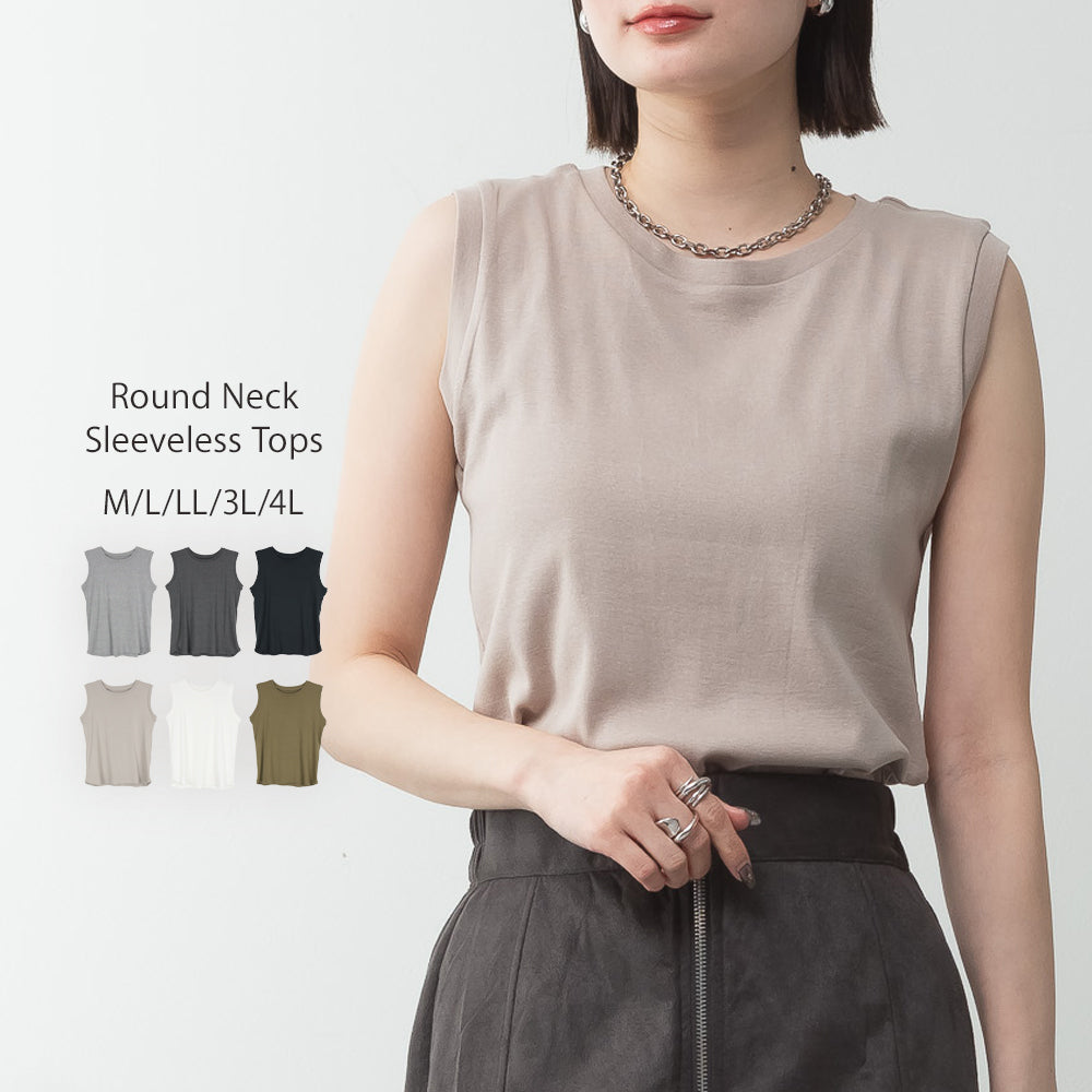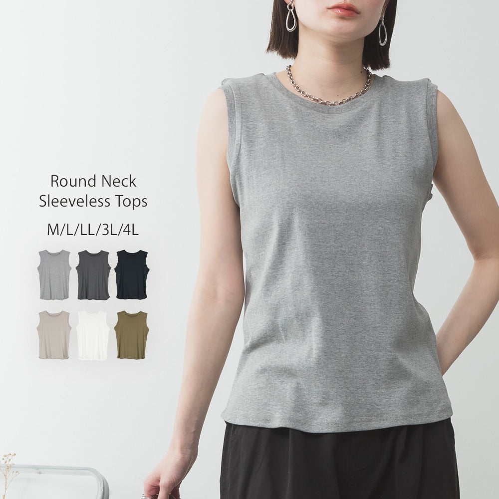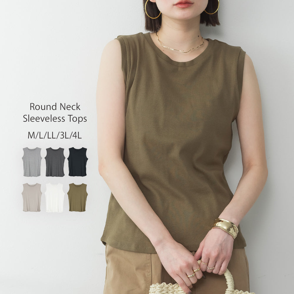 ラウンドネックノースリーブトップス