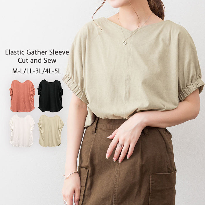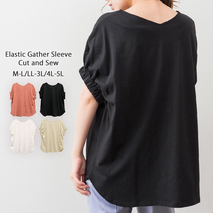 1枚で2役!前後2WAYで着用できるゴムギャザースリーブカットソー