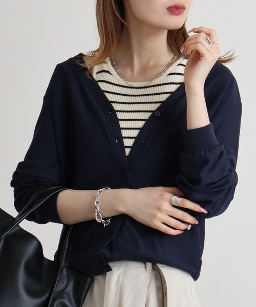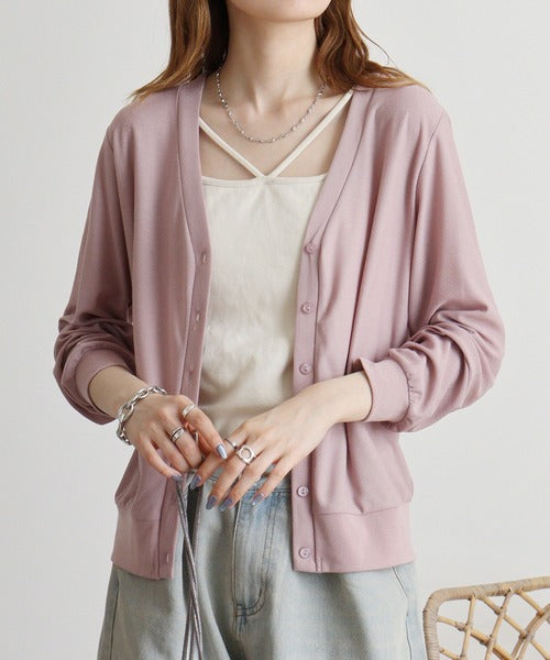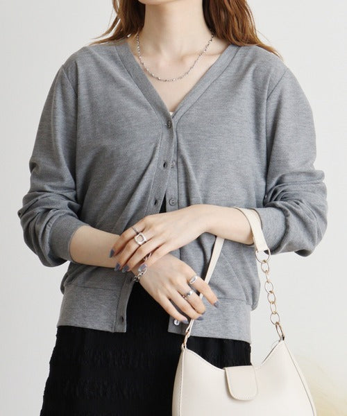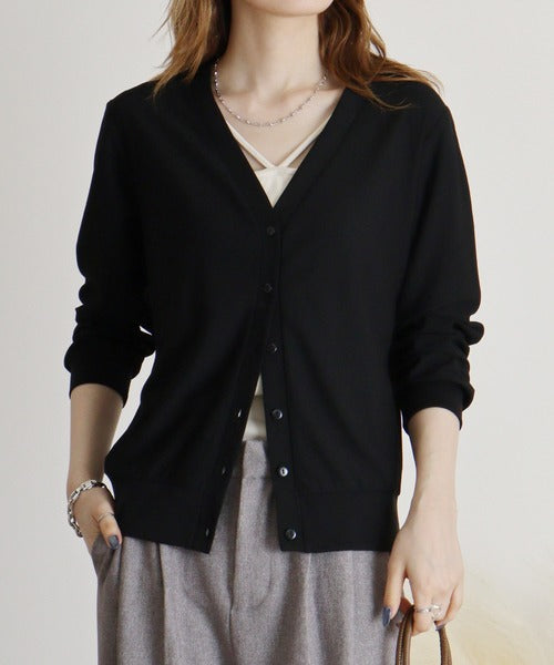 梨地カットVネックカーデ