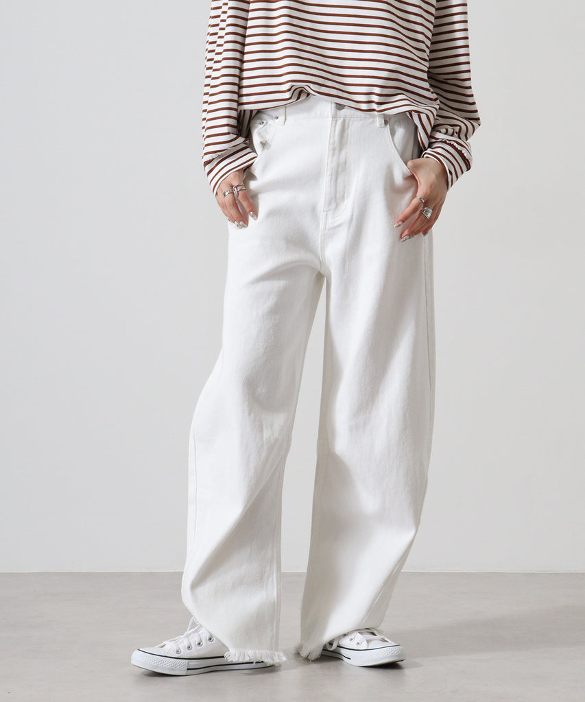 裾フリンジ デニムカーブパンツ