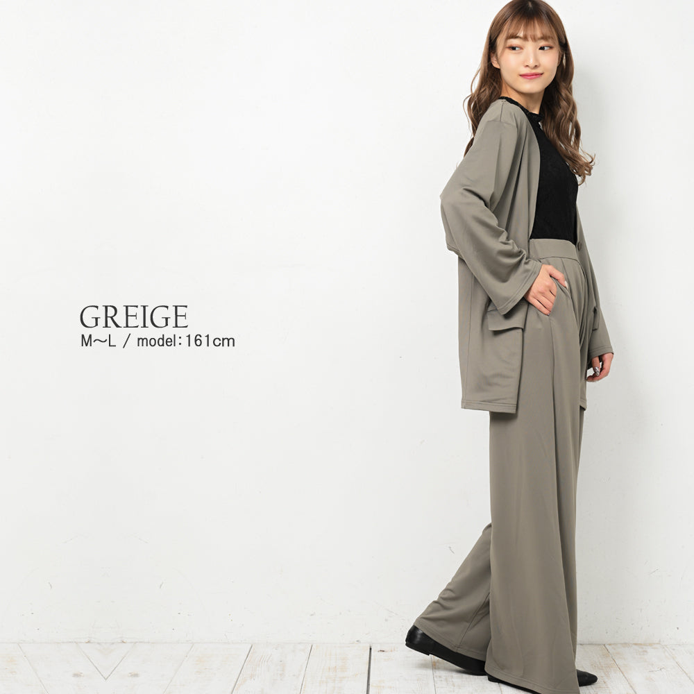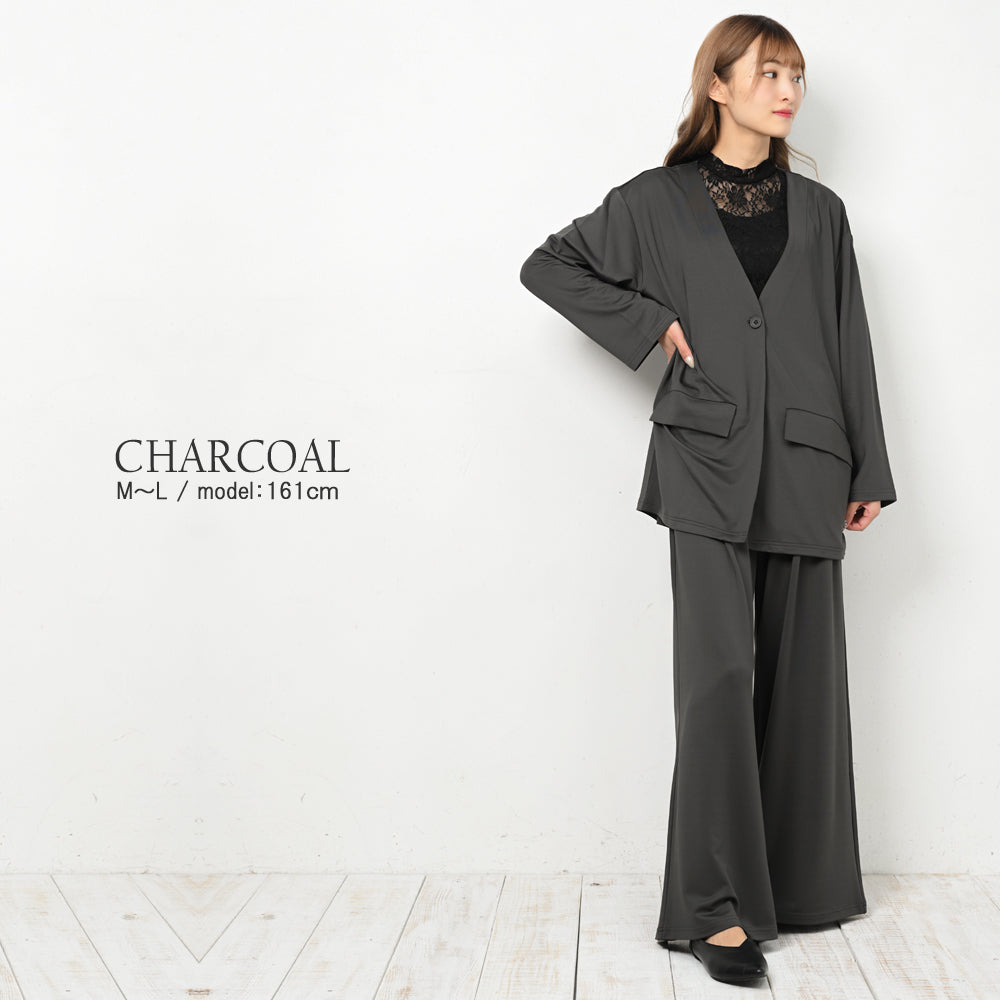 スタイリングが完成するジャケットとパンツのセットアップ。