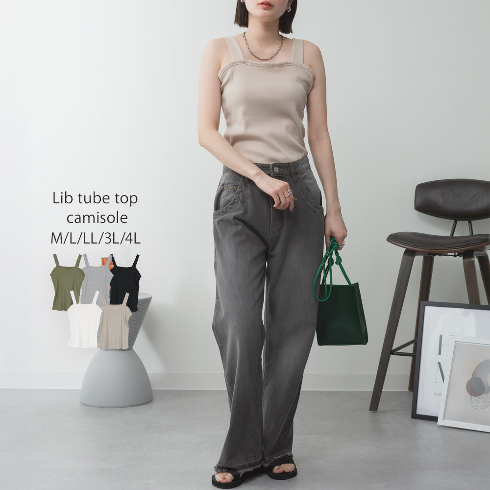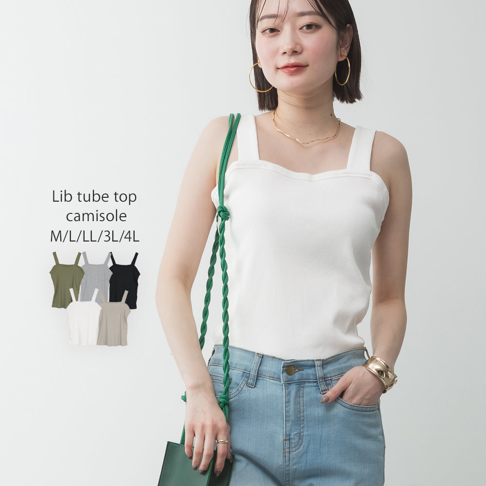 綿100%の肌にさらっと優しいリブ素材のチューブトップキャミ。