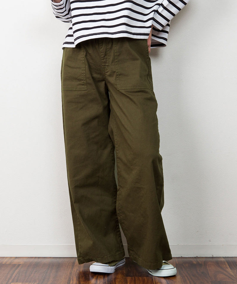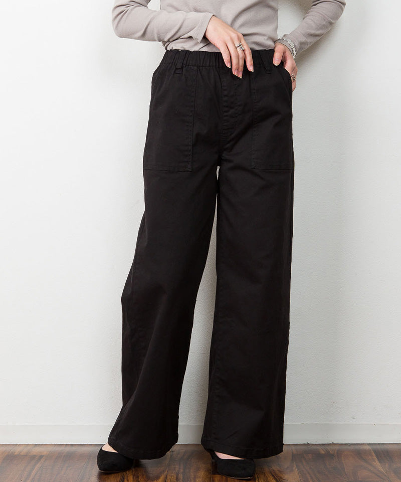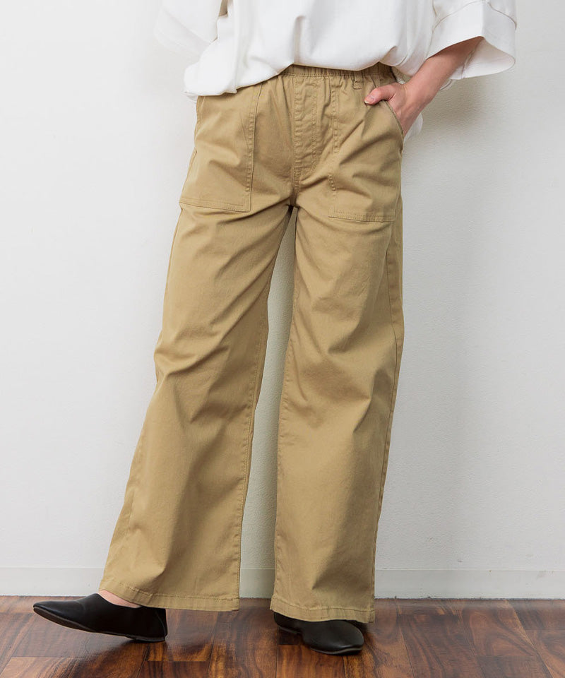 ウエストゴム+ストレッチ素材が履きやすいベイカーパンツ。