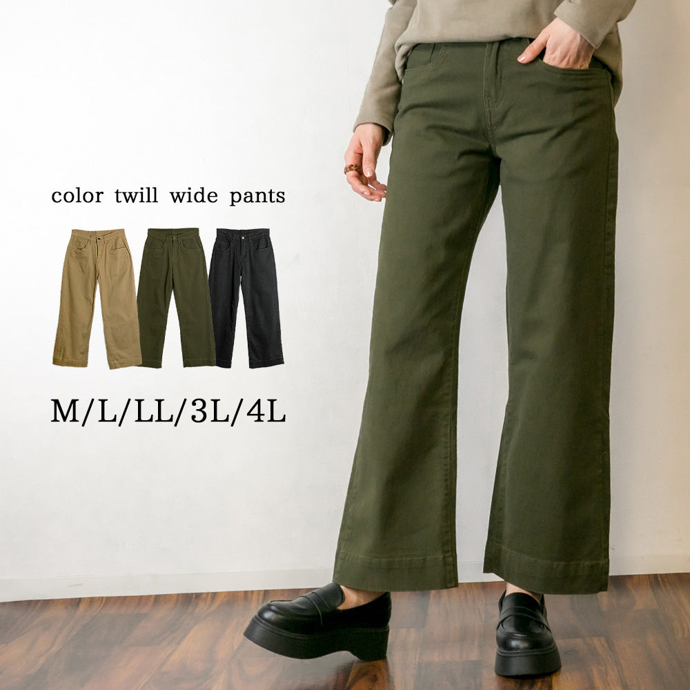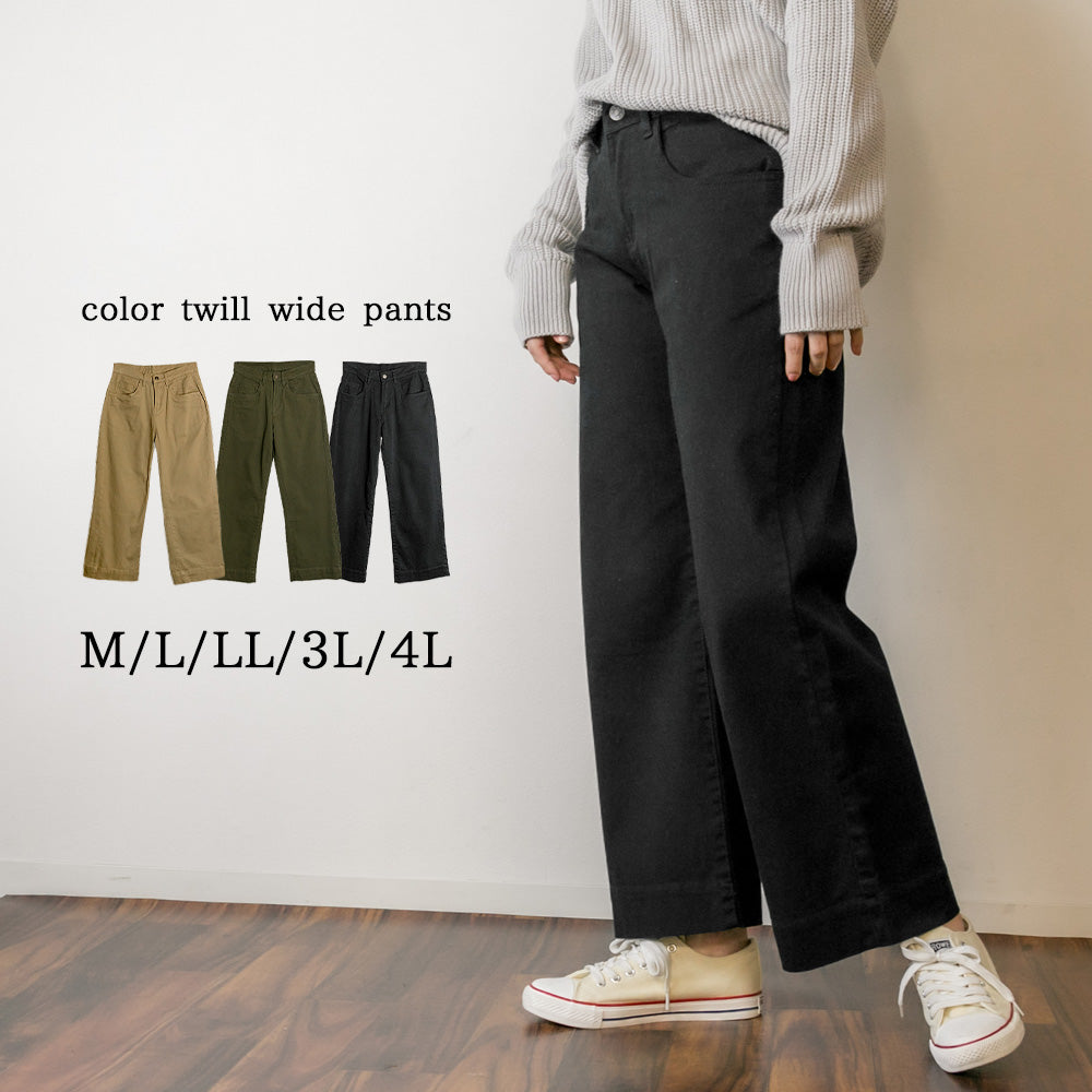 カラーツイルワイドパンツ ゆったり リラックス 美脚 チノパンツ イージーパンツ オフィス 可愛い 大きいサイズ ビッグサイズ ビッグシルエット カーキ ベージュ ブラック M L XL XXL LL 3L 4L レディース 春 夏 秋 冬