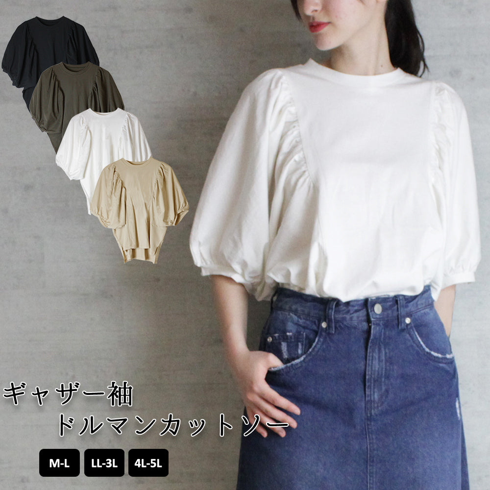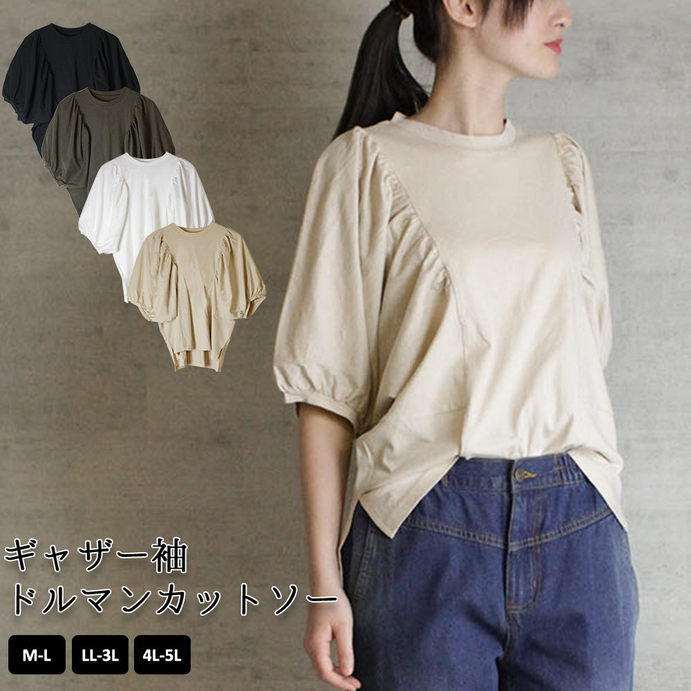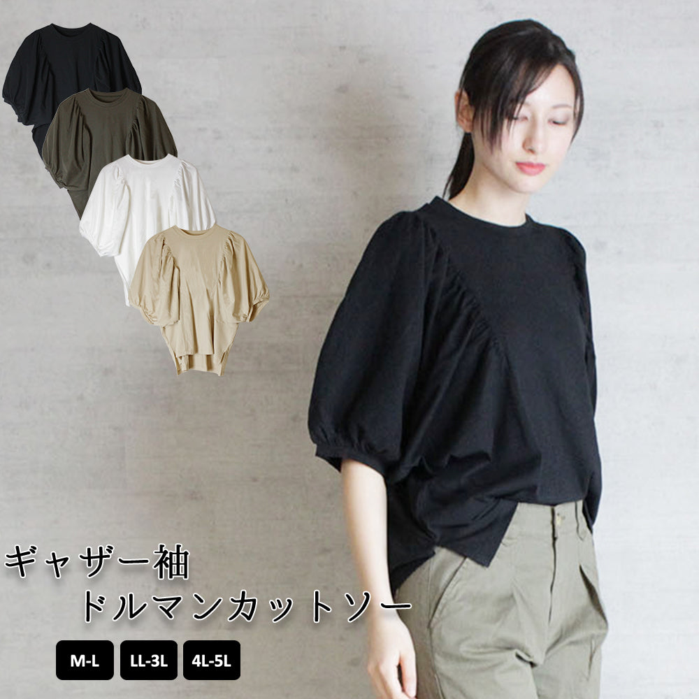 ギャザー袖ドルマンカットソー