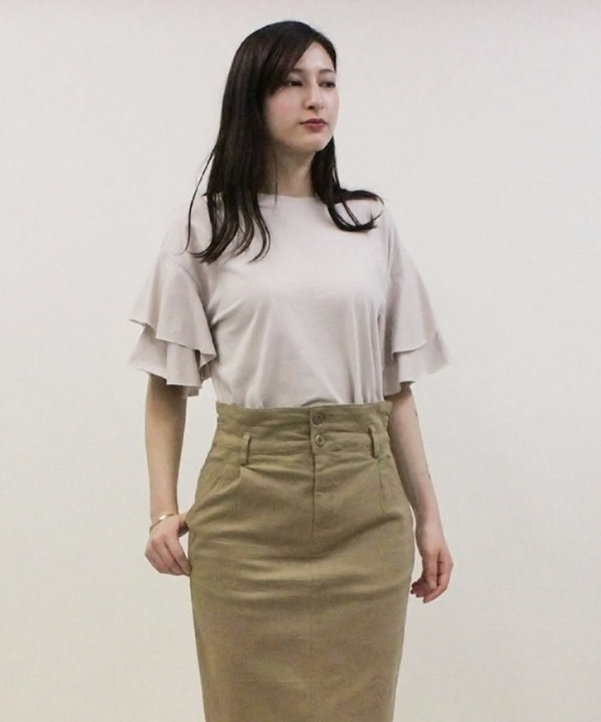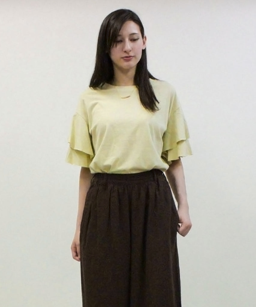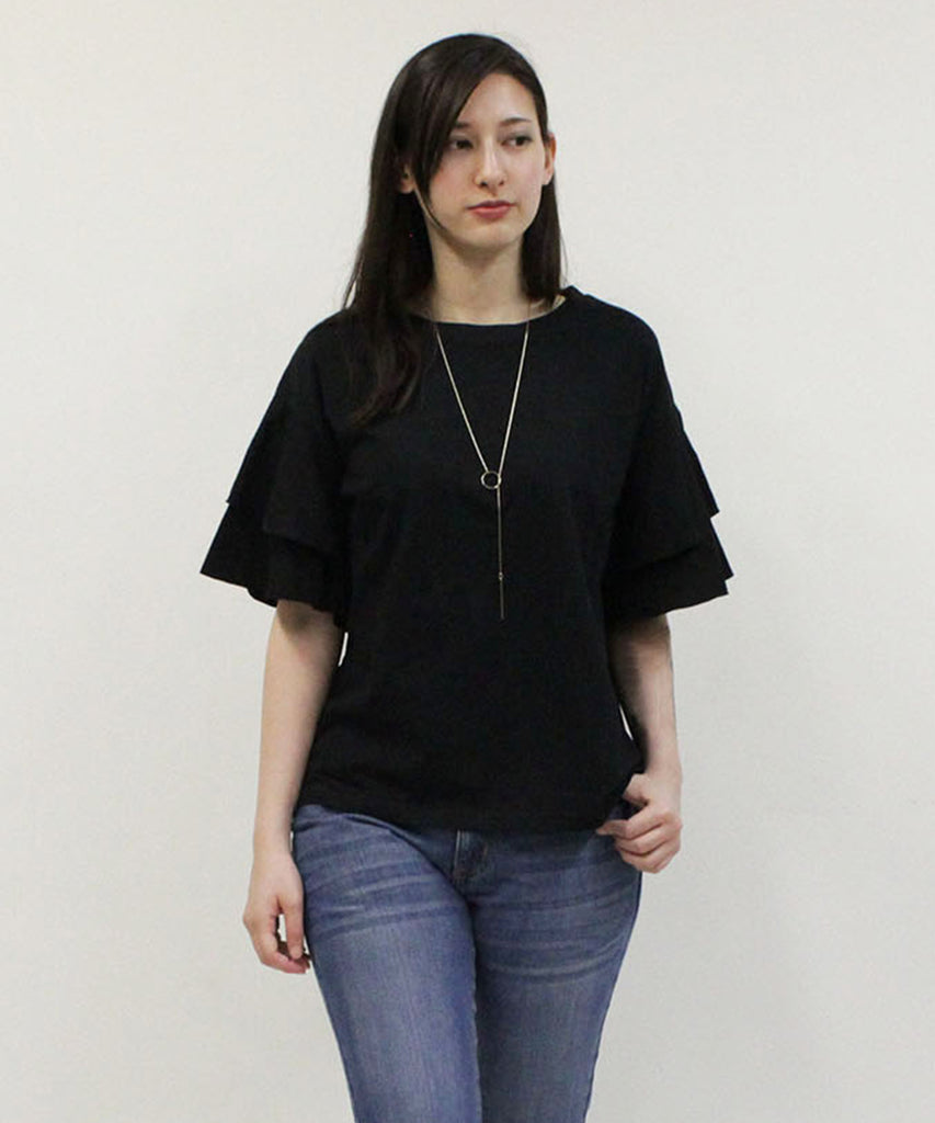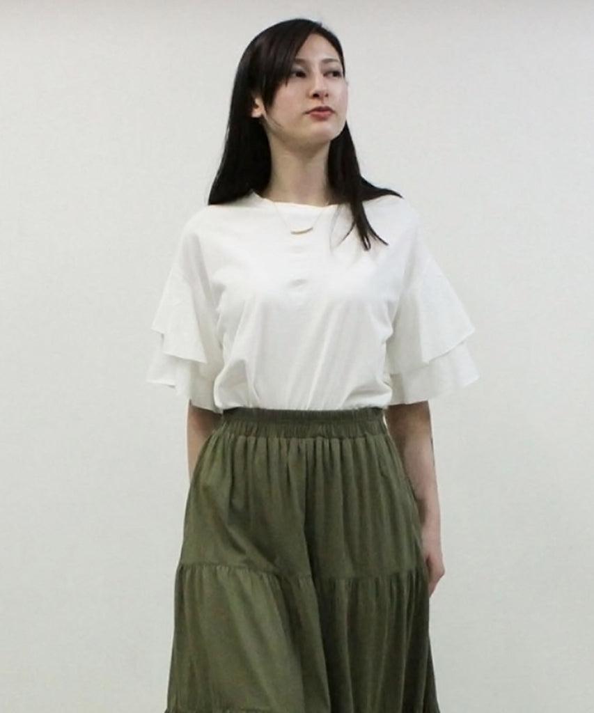 コットンフレアー袖カットソー ふんわり袖で大人フェミニンな印象に レディースファッション通販フリル袖 M-L LL-3L 4L-5L トップス Tシャツ フレア袖 半袖 大きいサイズ 大きめ 夏 無地