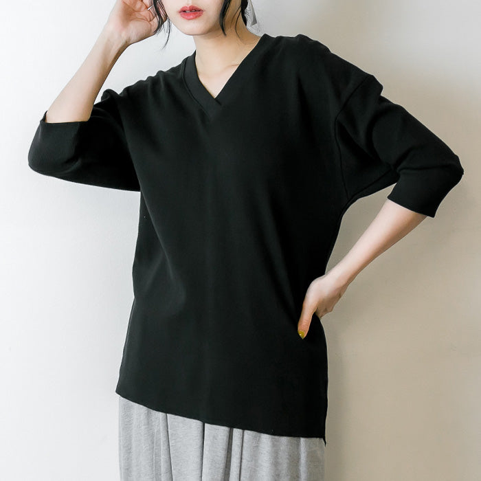 胸元はVネック仕様でスッキリと着ていただけます。