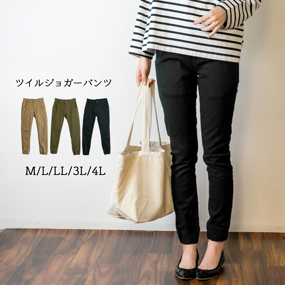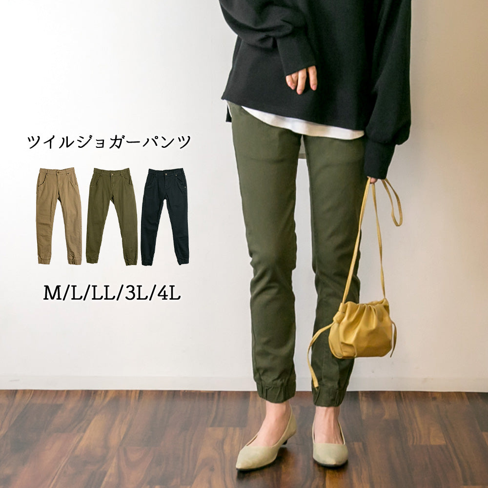 ツイルジョガーパンツ  ゆったり リラックス 美脚 伸縮 伸び チノパンツ イージーパンツ オフィス 可愛い 大きいサイズ ビッグサイズ ビッグシルエット カーキ ベージュ ブラック M L XL XXL LL 3L 4L レディース 春 夏 秋 冬