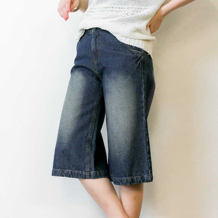 スラブデニムガウチョパンツ 綿100% コットン ゆったり リラックス 美脚 オフィス フィット デニムパンツ 可愛い 大きいサイズ ビッグサイズ ビッグシルエット ブルー インディゴ ネイビー 青 M L XL XXL LL 3L 4L レディース 春 夏 秋 冬 体型カバー 脚長 きれいめ 美脚 大きめ ガウチョパンツ ワイドパンツ スラブ生地