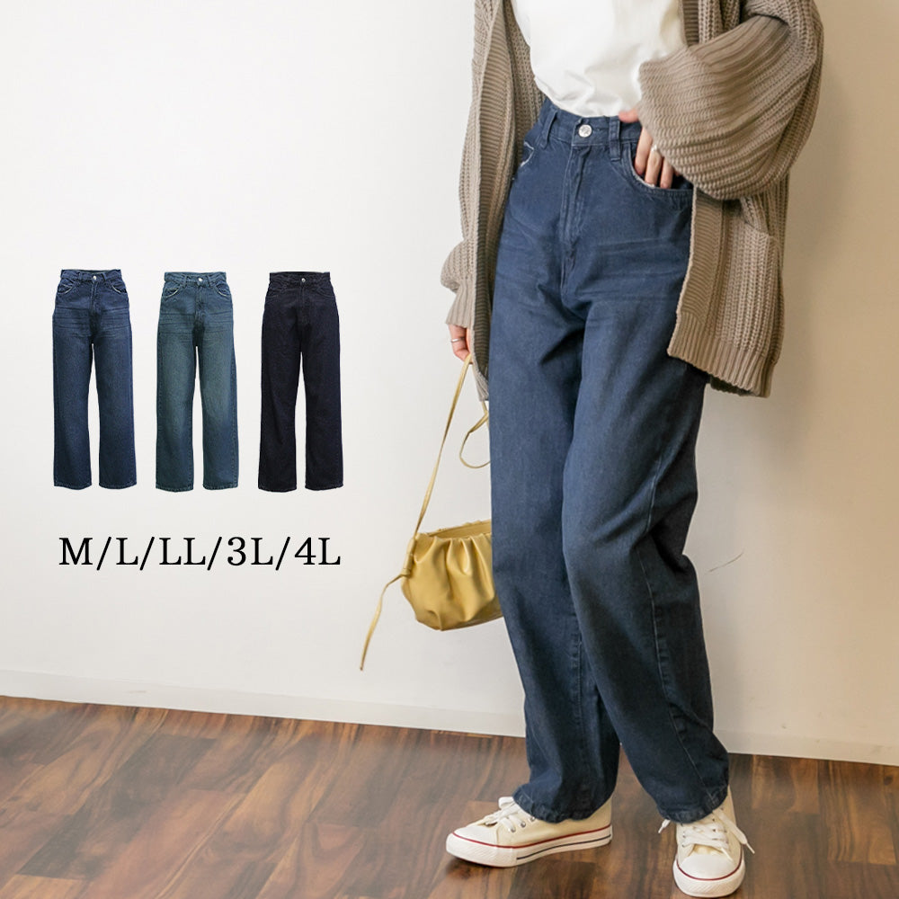 デニムハイライズ デニムストレートパンツ 程よくゆるっとしたルーズシルエット M L LL 3L 4L レディースファッション通販 デニム ワイドシルエット パンツ ボトム ゆったり 大きいサイズ 大きめ