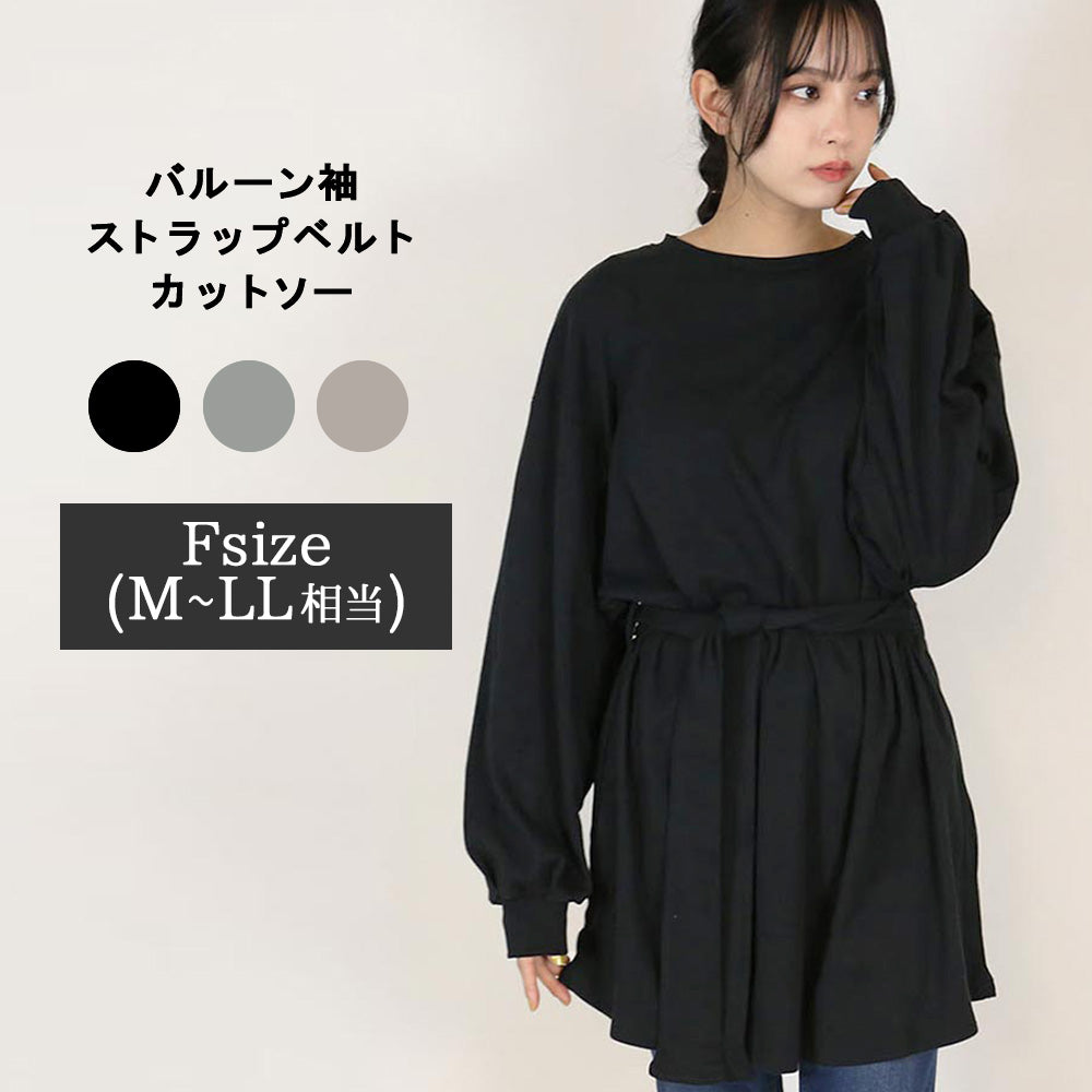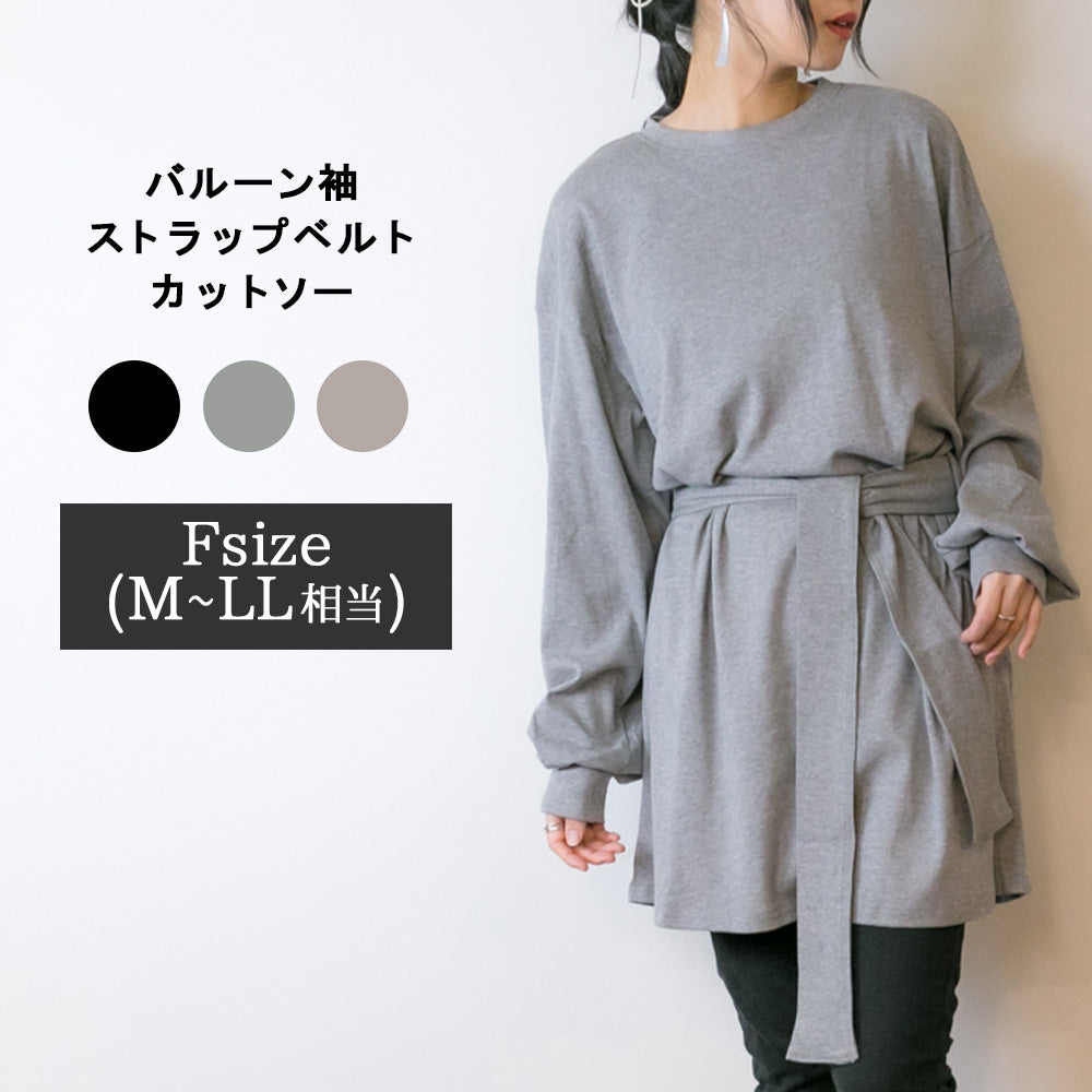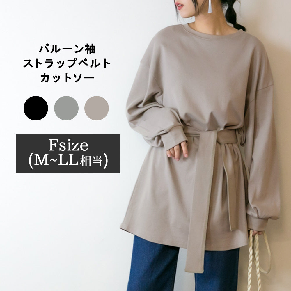 バルーン袖ストラップベルト ボリューム袖 バルーン袖 ドロップショルダー カットソー