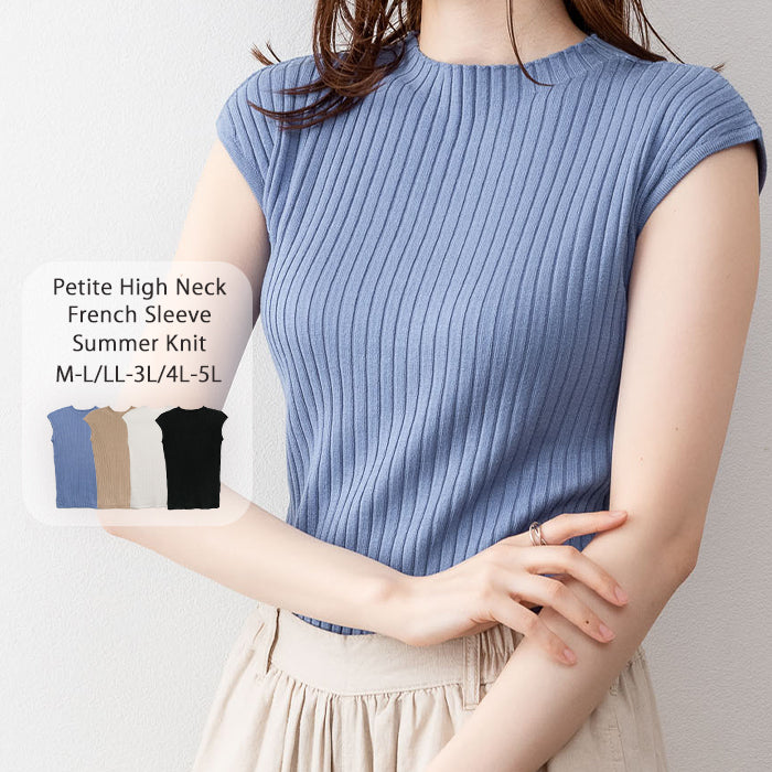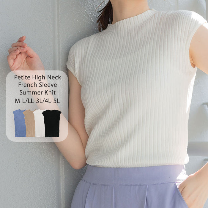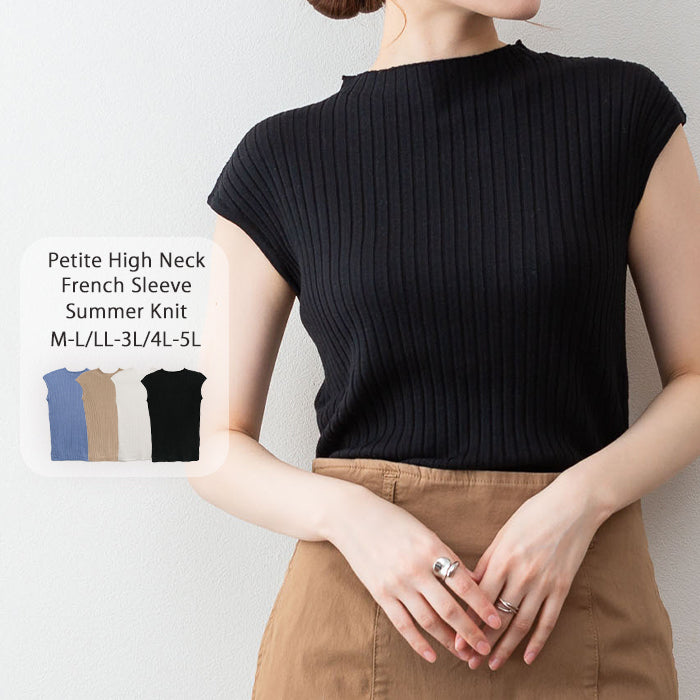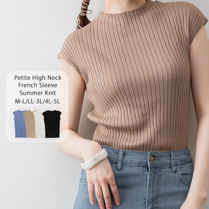 さらっとした涼し気な軽い糸を使ったプチハイネックの半袖サマーニット。
