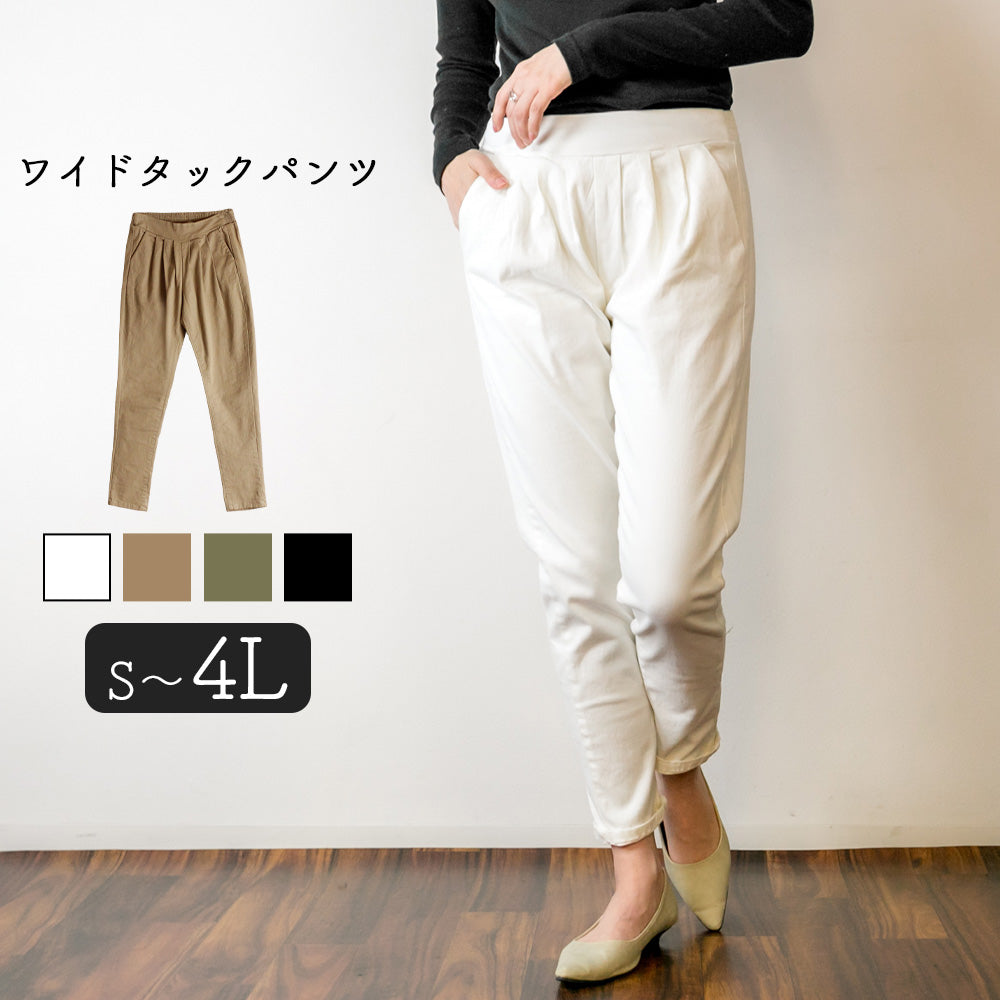 ワイドタックサルエルパンツ ゆったり リラックス 美脚 伸縮 伸び チノパンツ イージーパンツ オフィス 可愛い 大きいサイズ ビッグサイズ ビッグシルエット カーキ ベージュ ブラック M L XL XXL LL 3L 4L レディース 春 夏 秋 冬