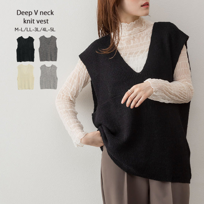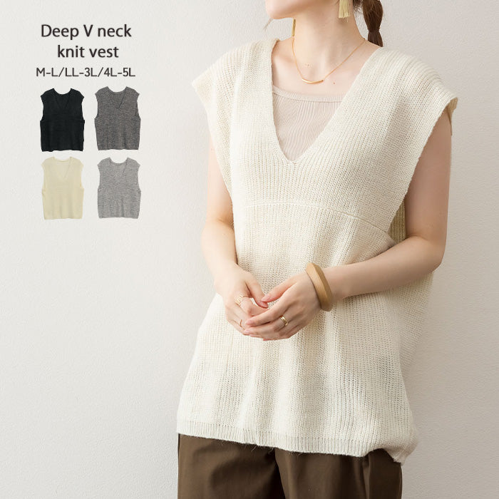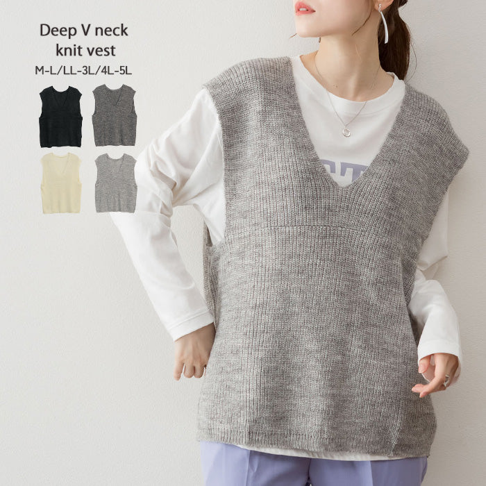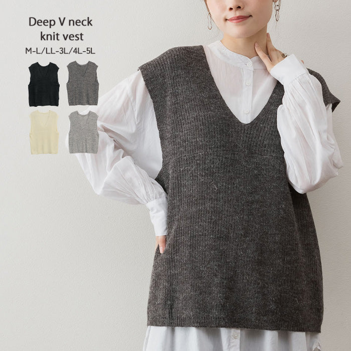 すっきりとしたネックラインで重ね着スタイルにおすすめなニットベスト。