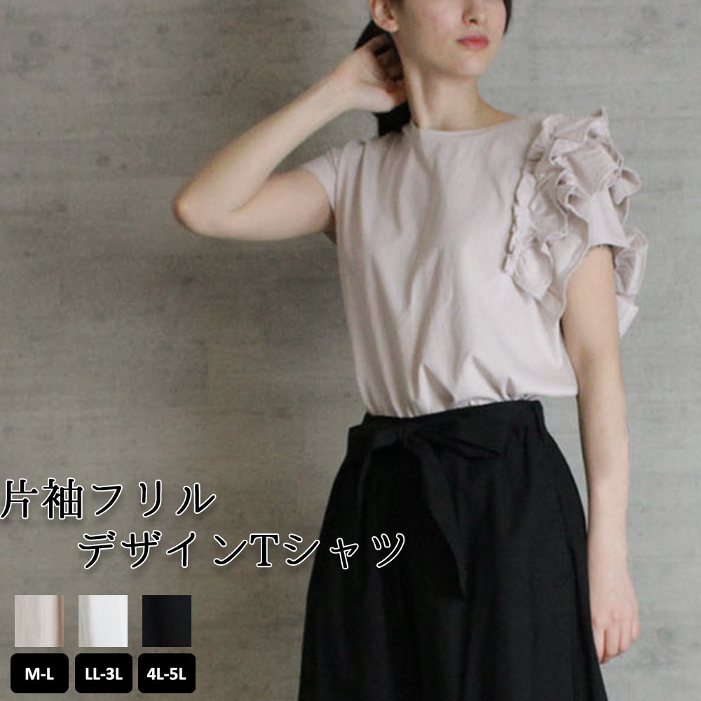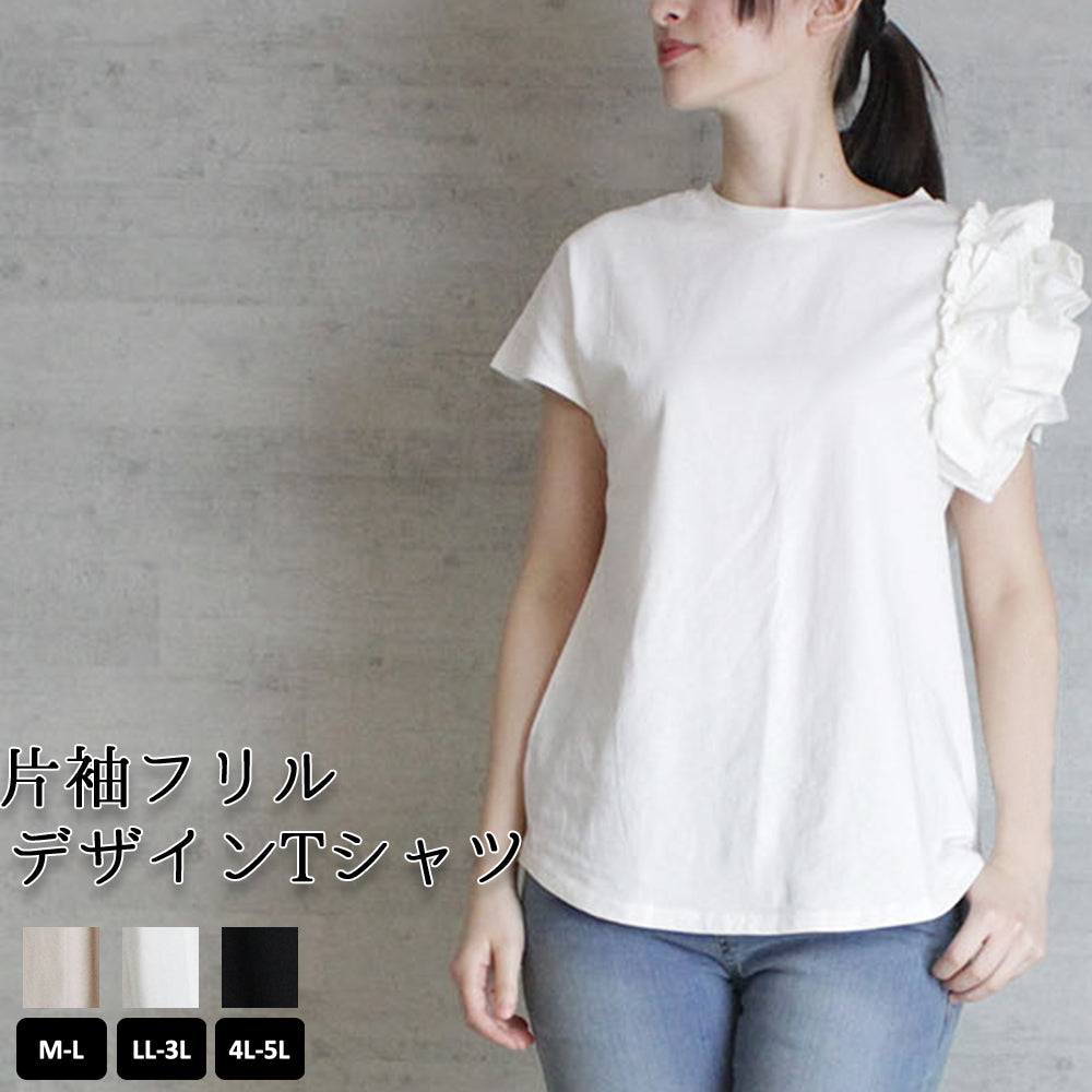一枚でおしゃれが完成!コットン素材の片袖フリルデザインTシャツ
