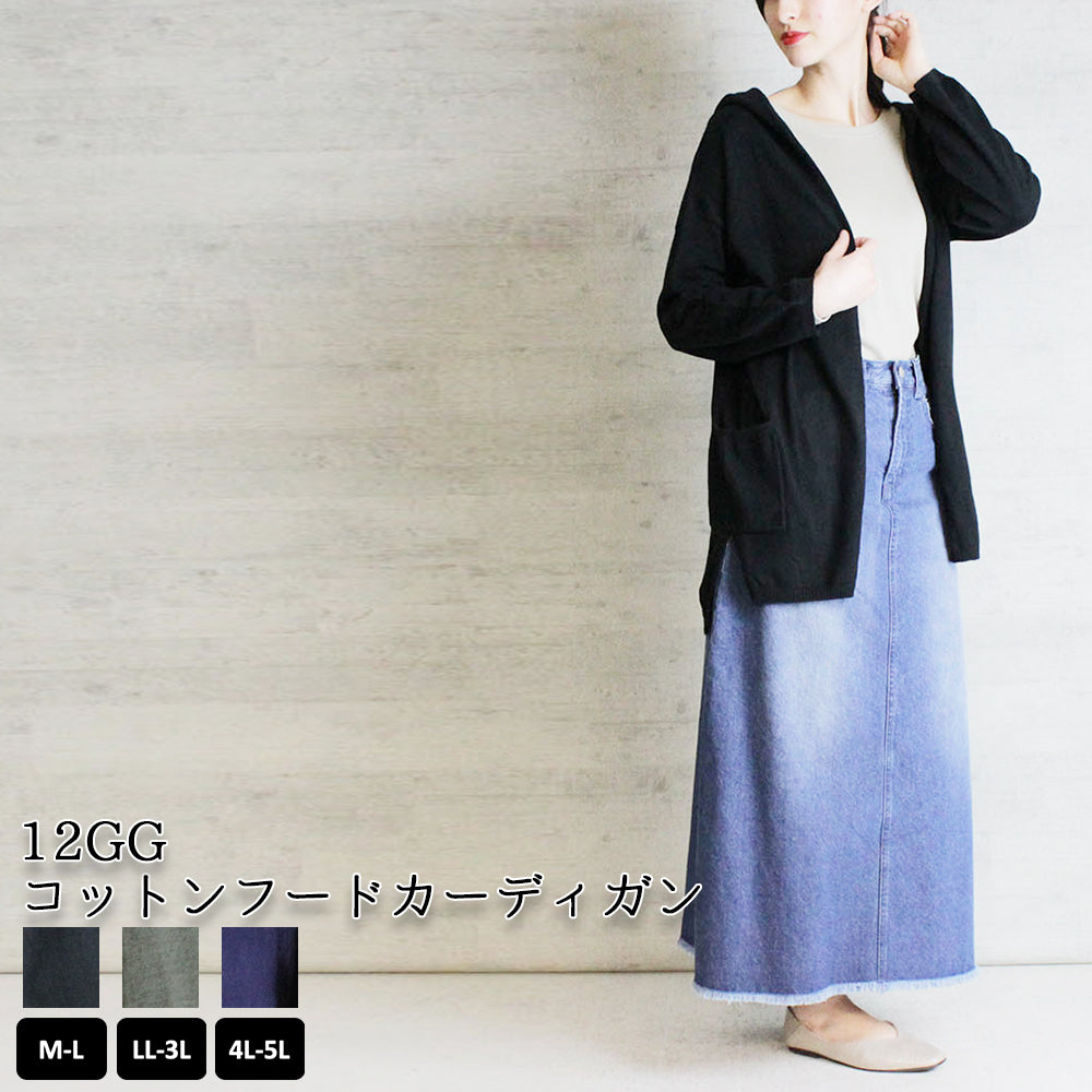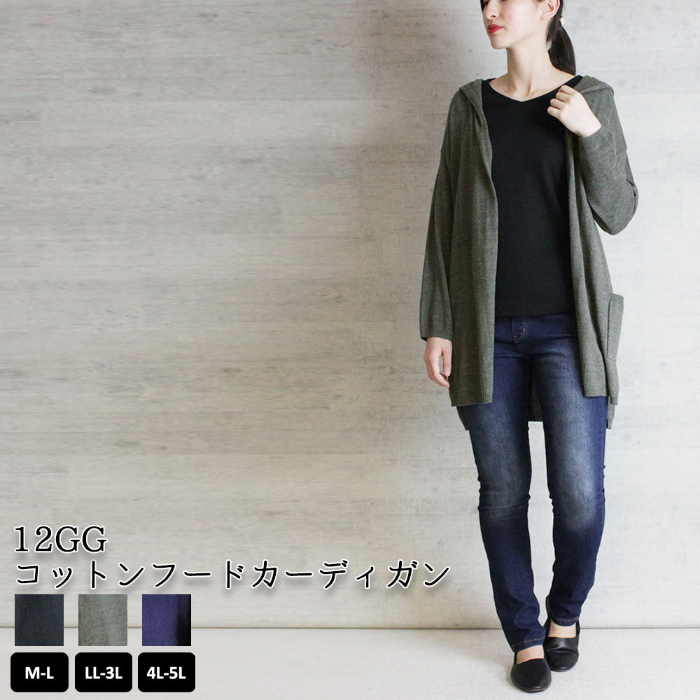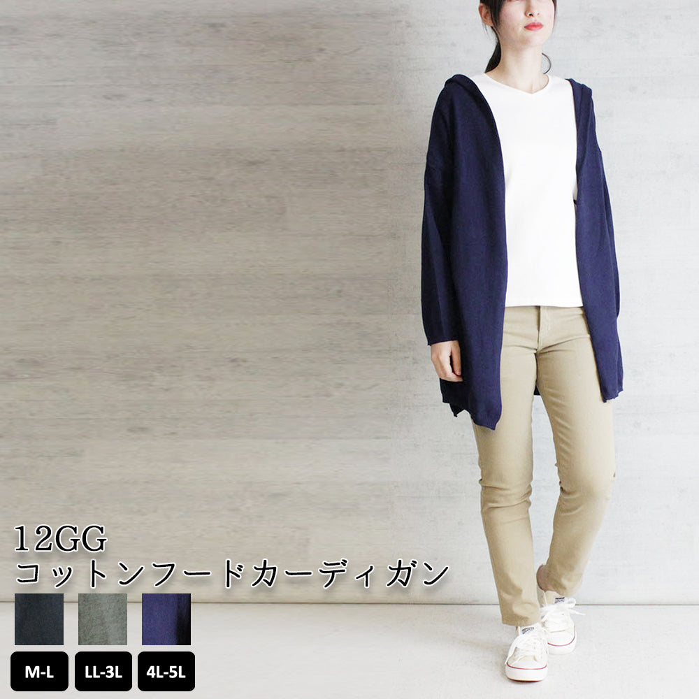 12GGコットンフードカーディガン トップス 夏服 大きいサイズ カーディガン サマーカーディガン サマーニット ロングカーディガン