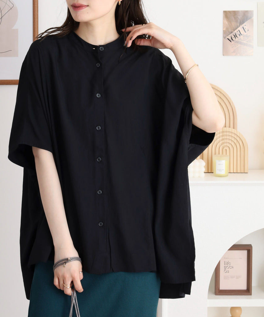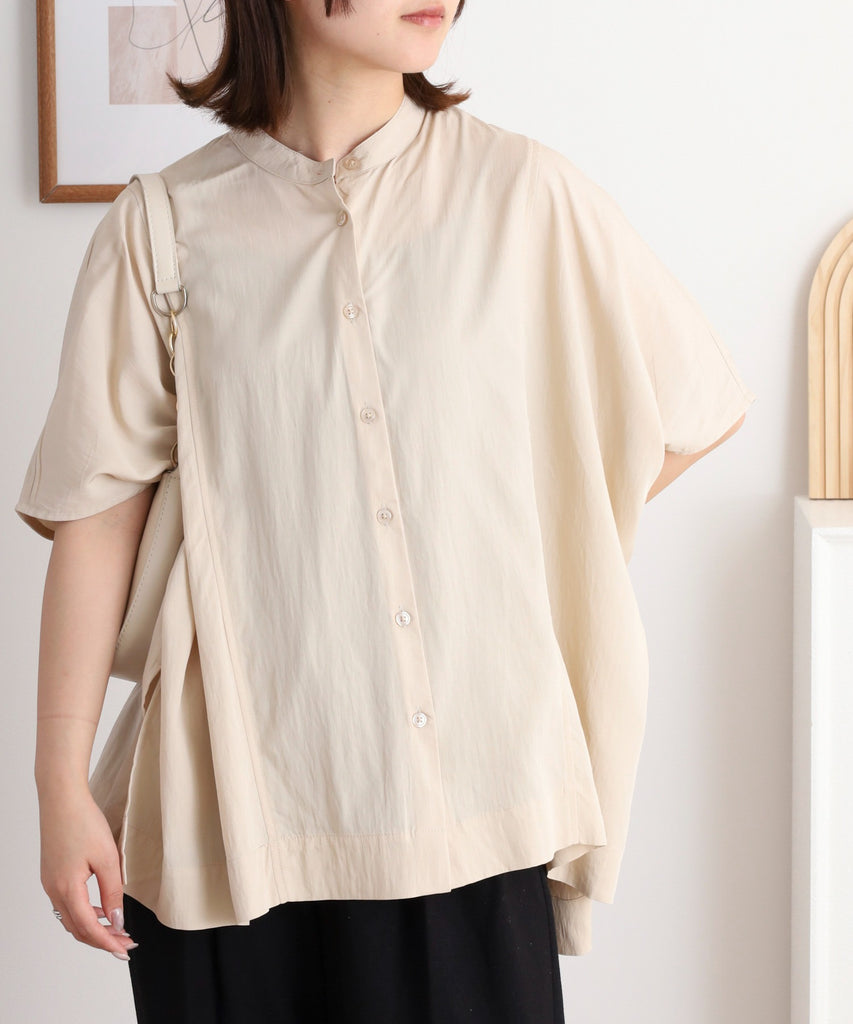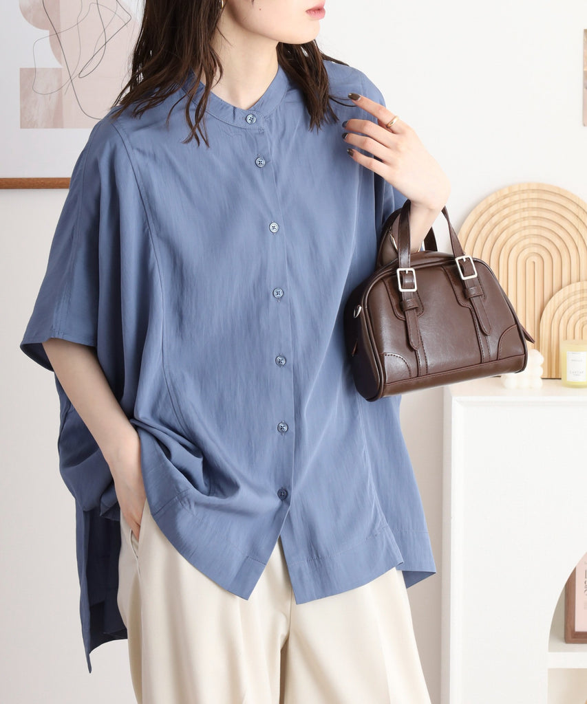 バンドカラーが首元をすっきりと見せてくれる、大人のきれいめカジュアルにぴったりの一着です。