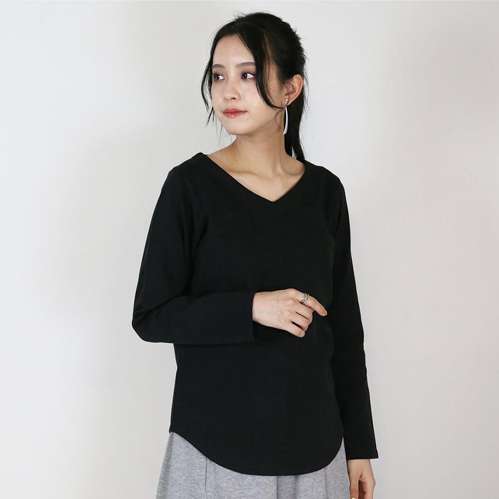 シンプルなデザインに無地で仕上げた長袖Tシャツなのでどんなコーデにも馴染みます。