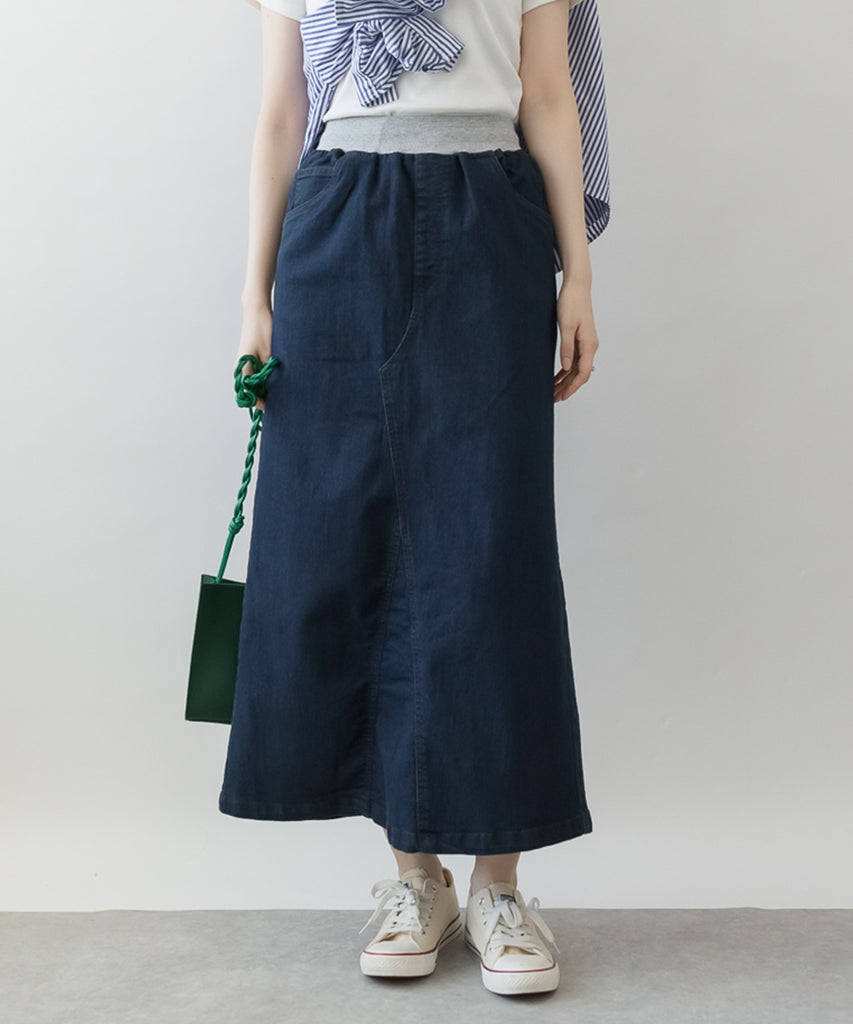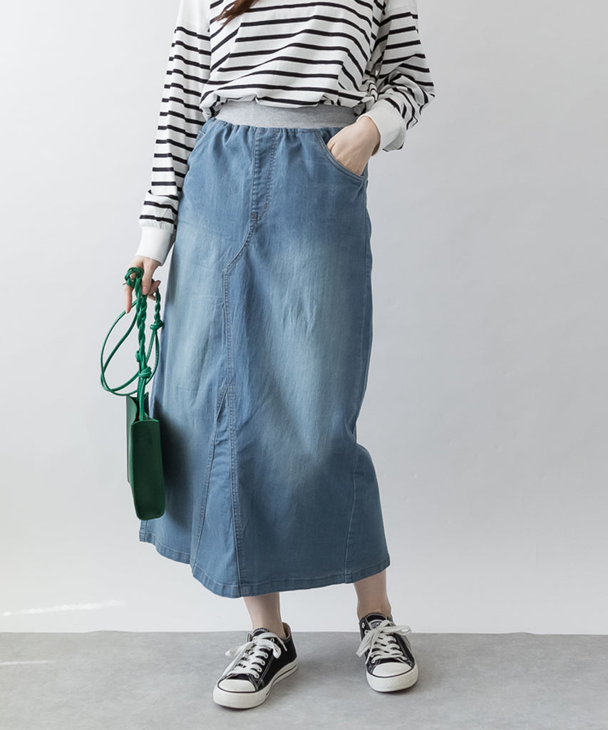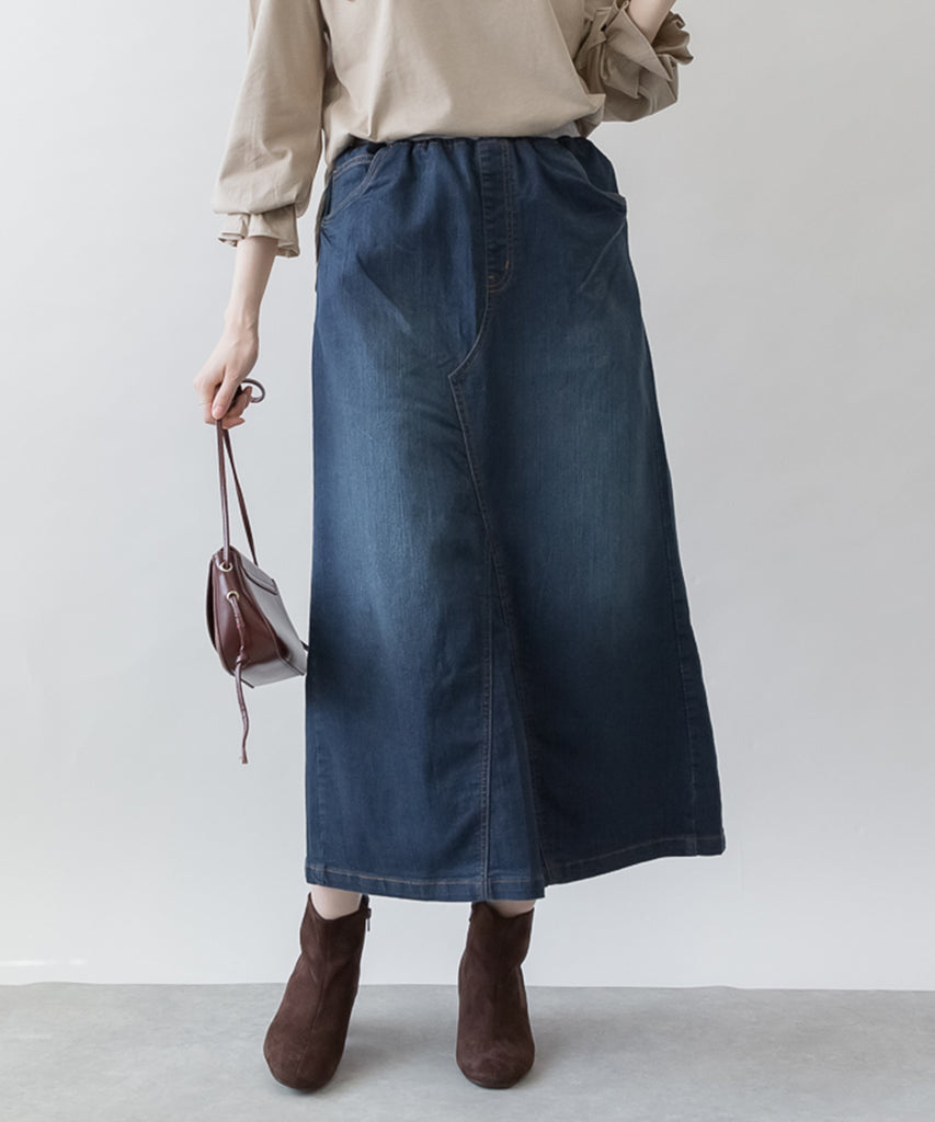 快適さと美しいシルエットを両立した大人のデニムスカート。