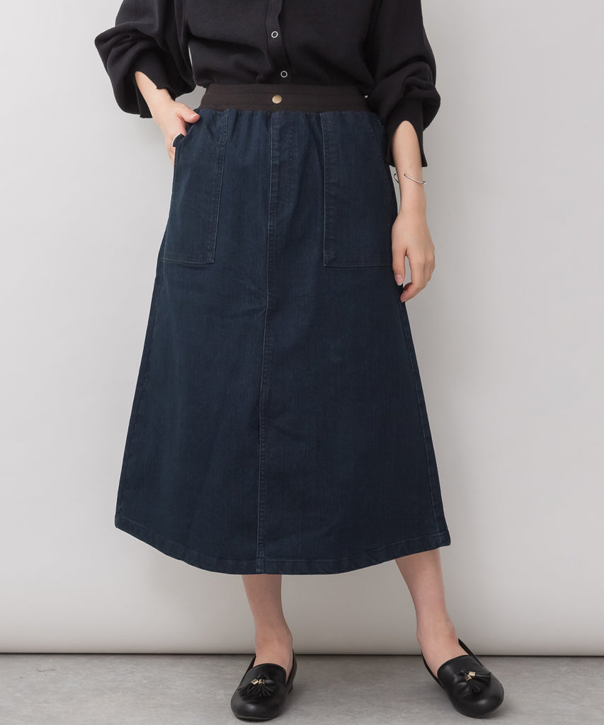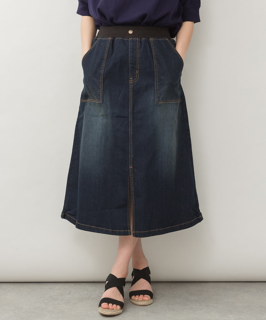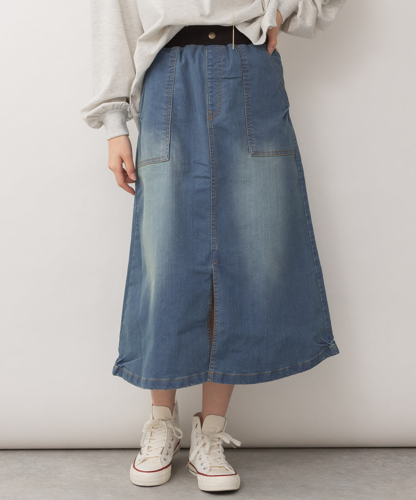 ウエストリブベイカーデニムスカート