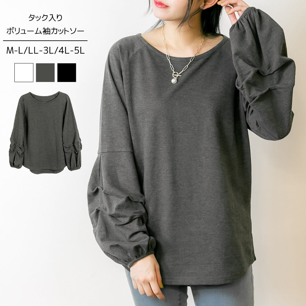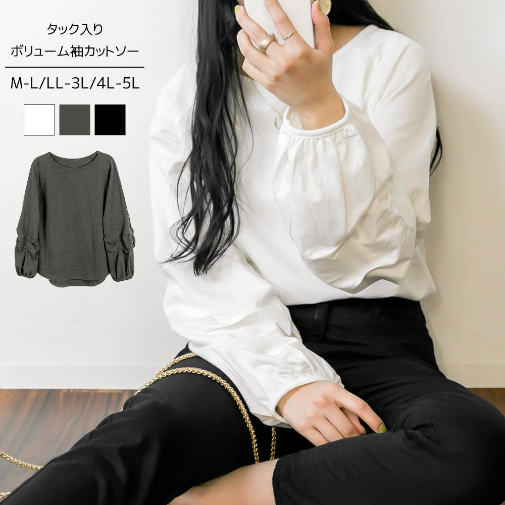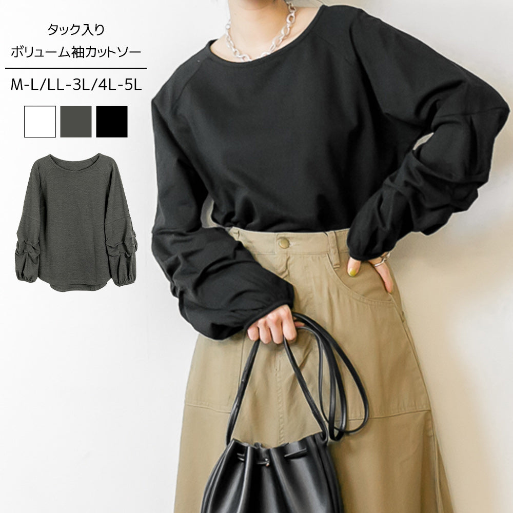 ぽわんとボリュームがある袖が大人可愛い ミニ裏毛タックボリューム袖カットソー