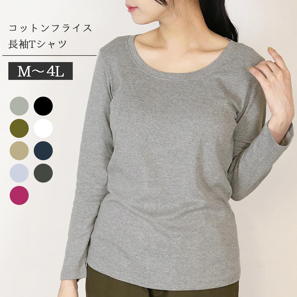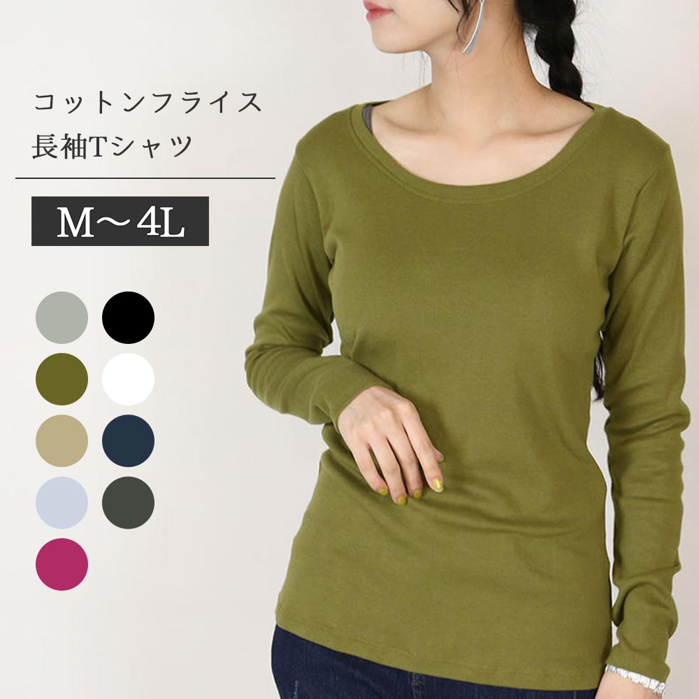 コットンフライス長袖Tシャツ カットソー 長袖 クルーネック 丸首 Tシャツ 春コーデ レディース カジュアル カットソー ロンT ロングスリーブ ビッグサイズ 体型カバー ビッグシルエット 大きいサイズ M/L/LL/XL/XXL/3L/4Lサイズ 春 夏 秋