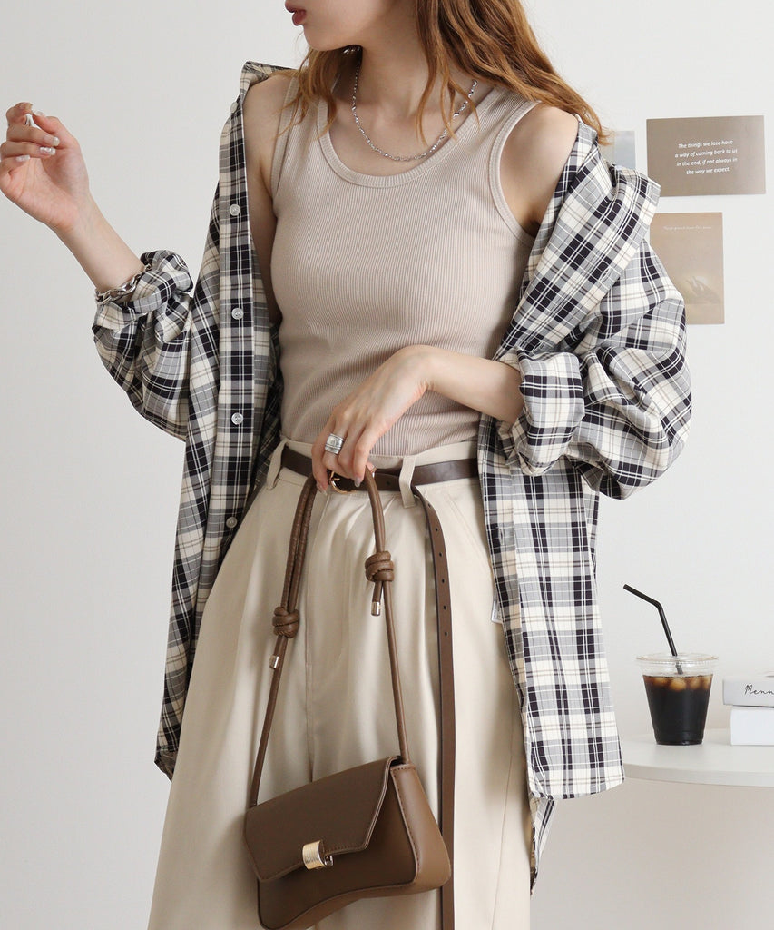 [Mサイズ]丈:63cm、肩幅:27cm、身幅:34cm、ウエスト幅:32cm、裾幅:37cm、天幅:16cm