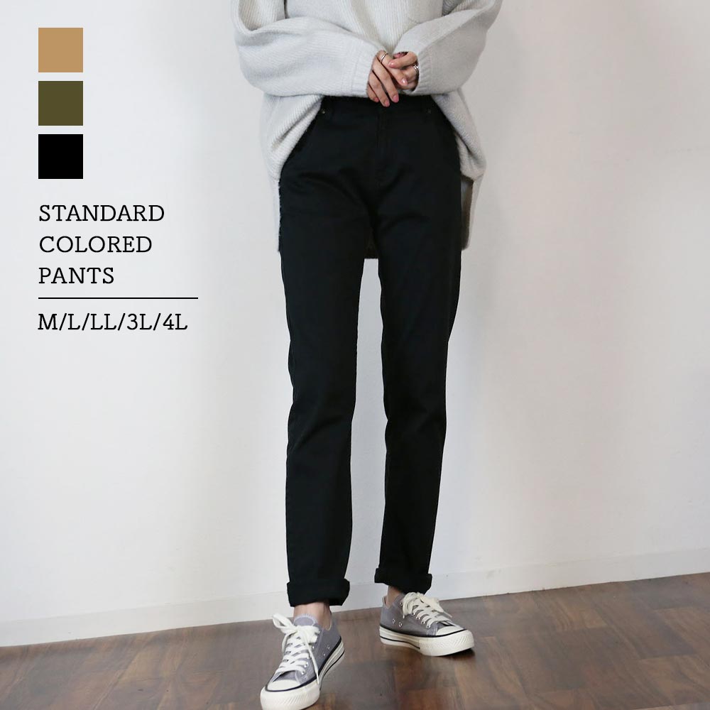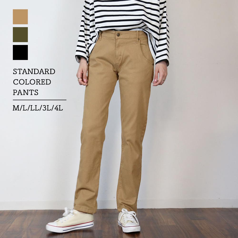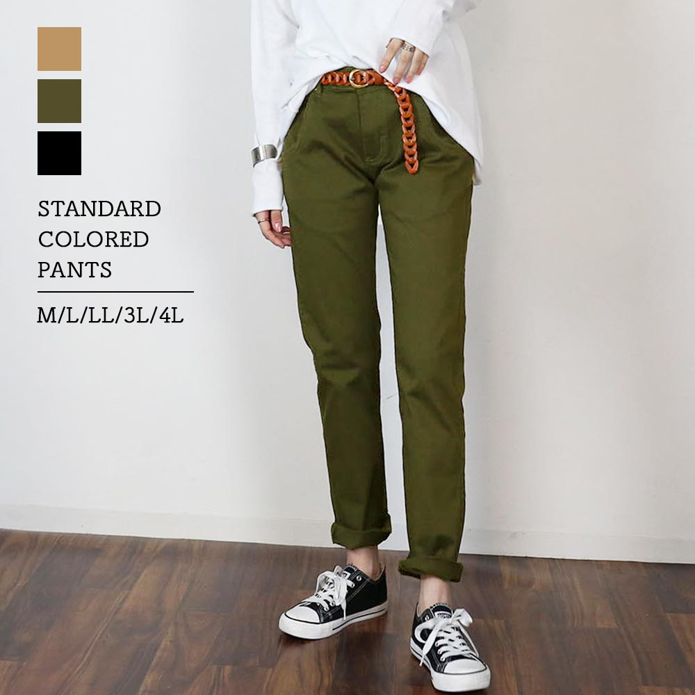 スタンダードカラーパンツ ゆったり リラックス 美脚 伸縮 伸び チノパンツ イージーパンツ オフィス 可愛い 大きいサイズ ビッグサイズ ビッグシルエット カーキ ベージュ ブラック M L XL XXL LL 3L 4L レディース 春 夏 秋 冬