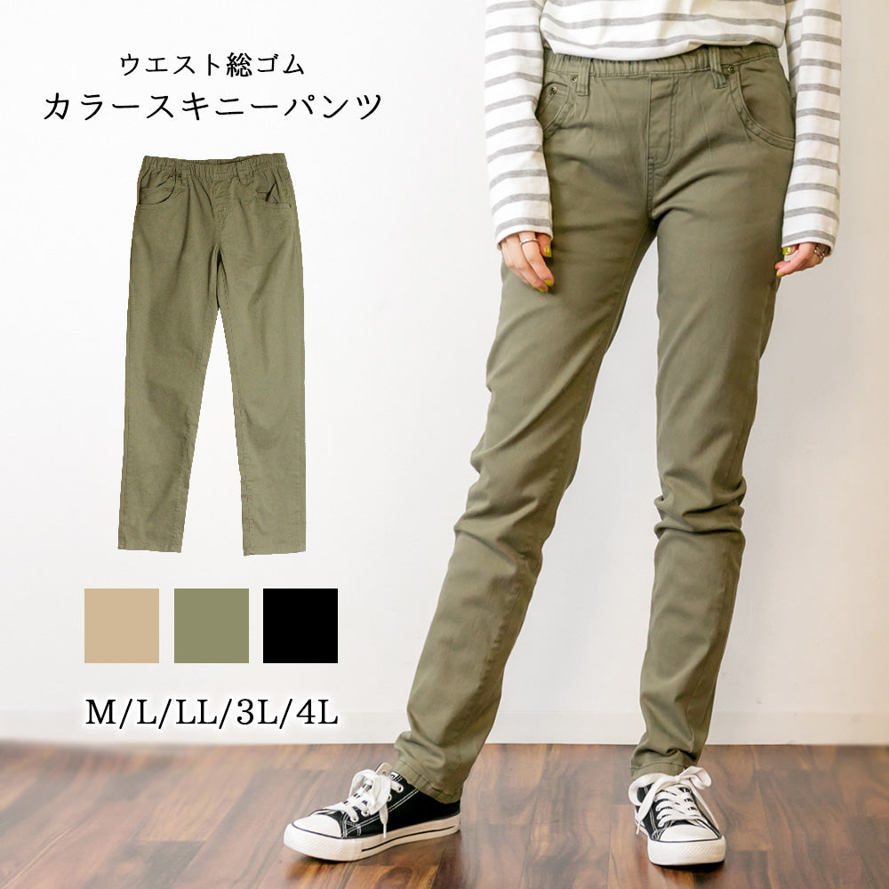 ストレッチ イージーパンツ ゆったり リラックス 美脚 伸縮 伸び チノパンツ イージーパンツ オフィス 可愛い 大きいサイズ ビッグサイズ ビッグシルエット カーキ ベージュ ブラック M L XL XXL LL 3L 4L レディース 春 夏 秋 冬