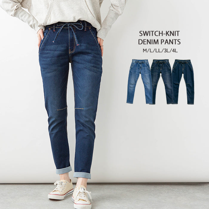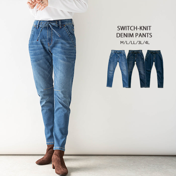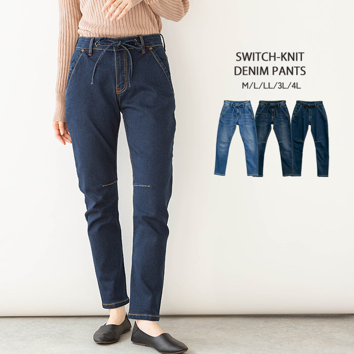 ニットデニム切り替えパンツ