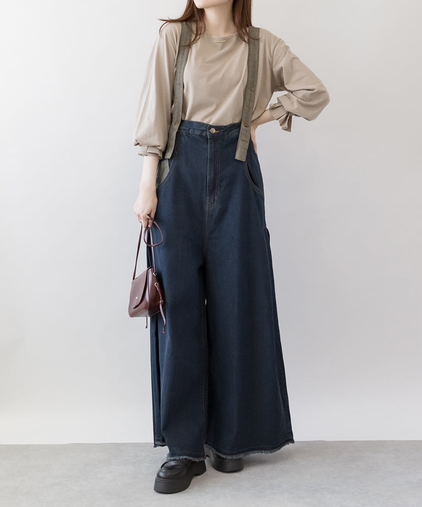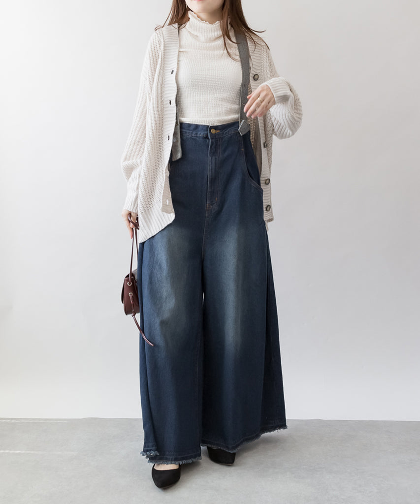 足元もこだわりのワイドシルエットで後ろから見てもかわいい。