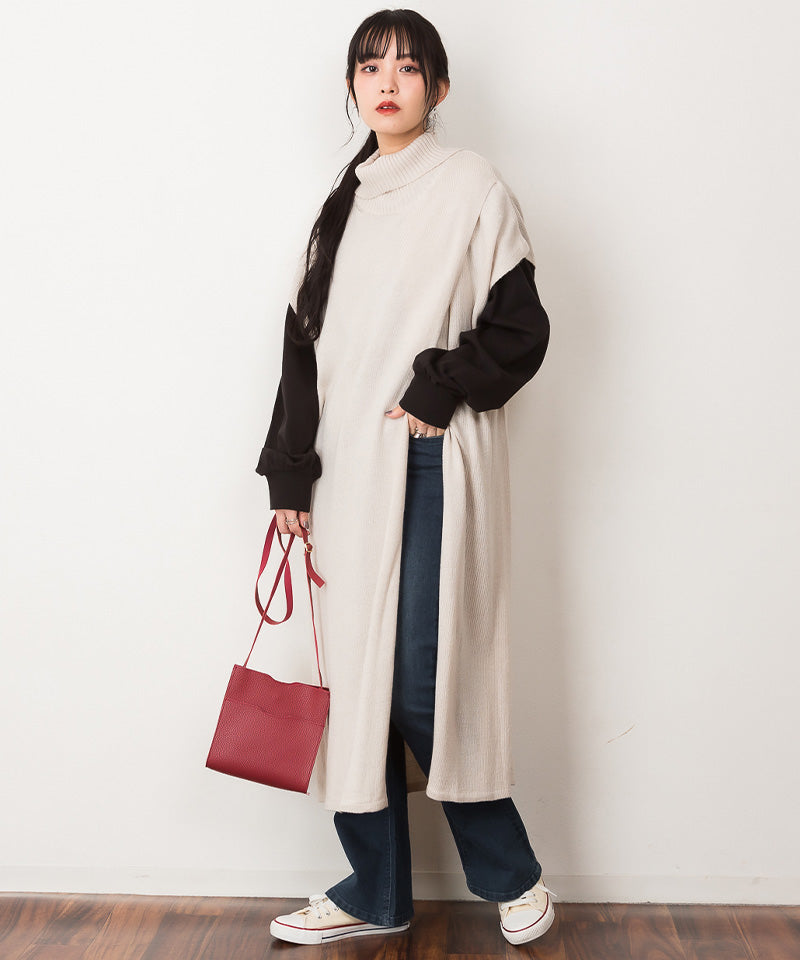 いつものコーディネートにプラスするだけで、トレンドのレイヤードコーデが完成するロングベスト。