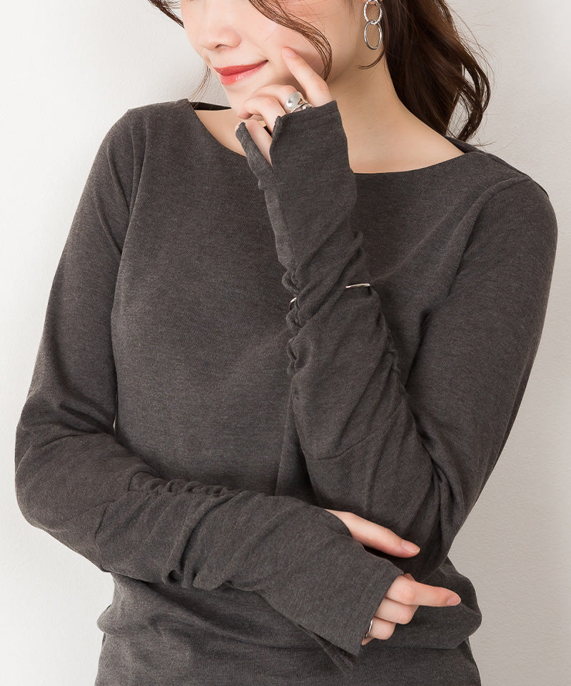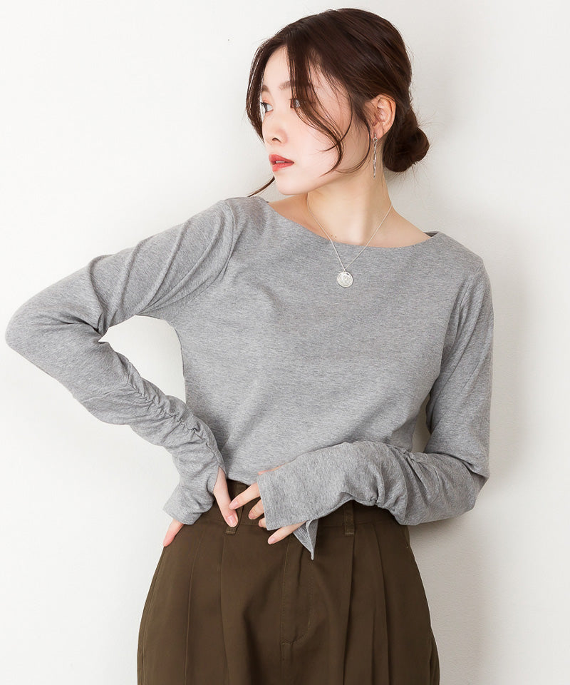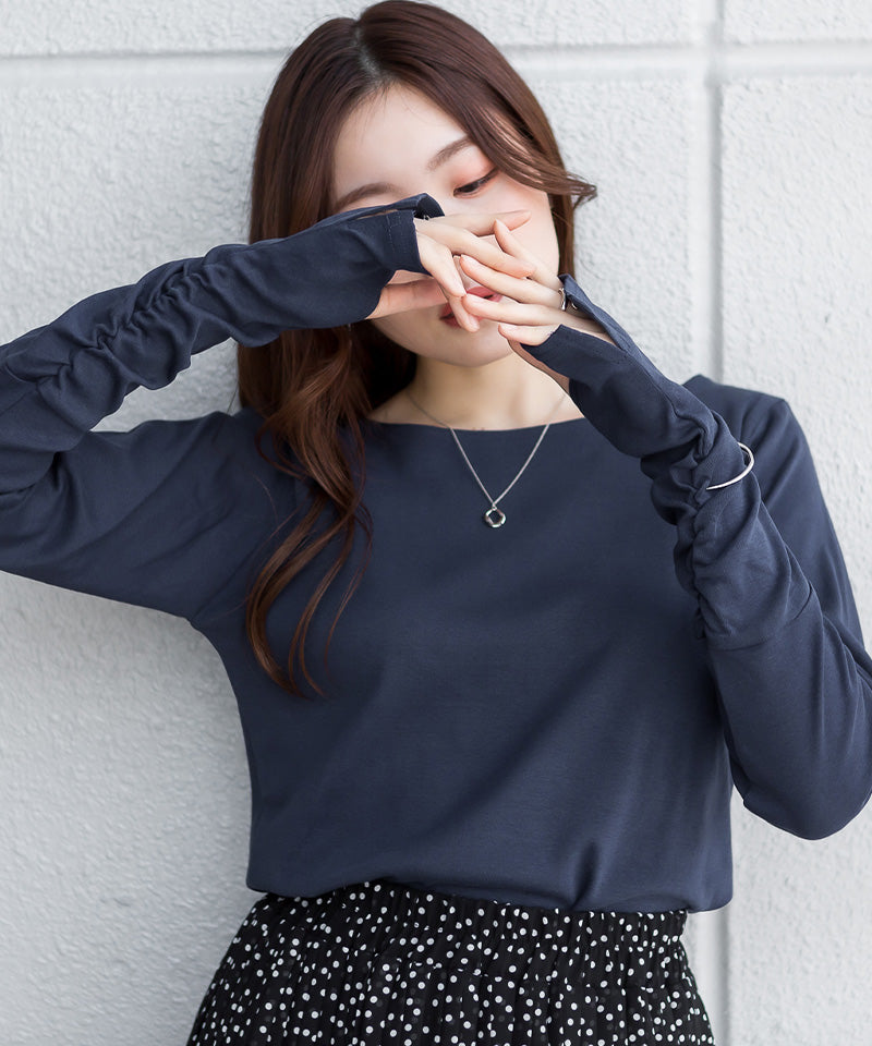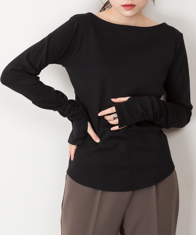 ボートネック指空きTシャツ
