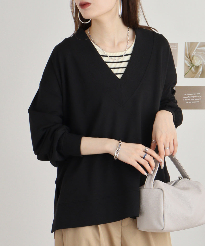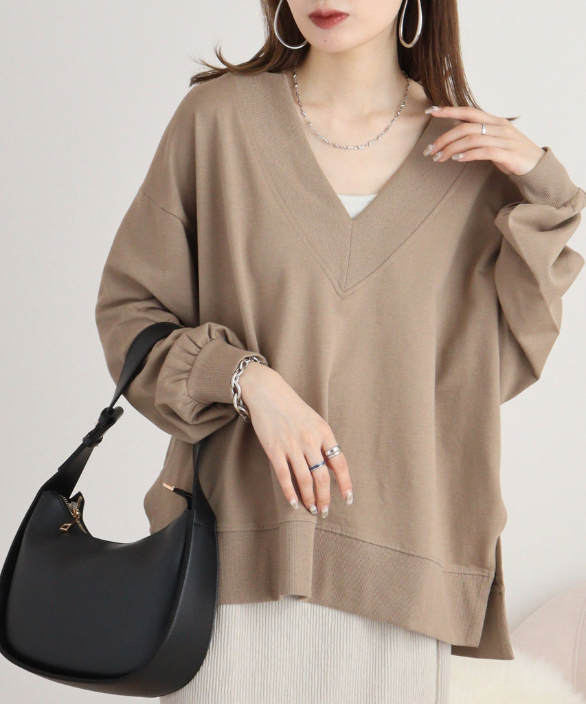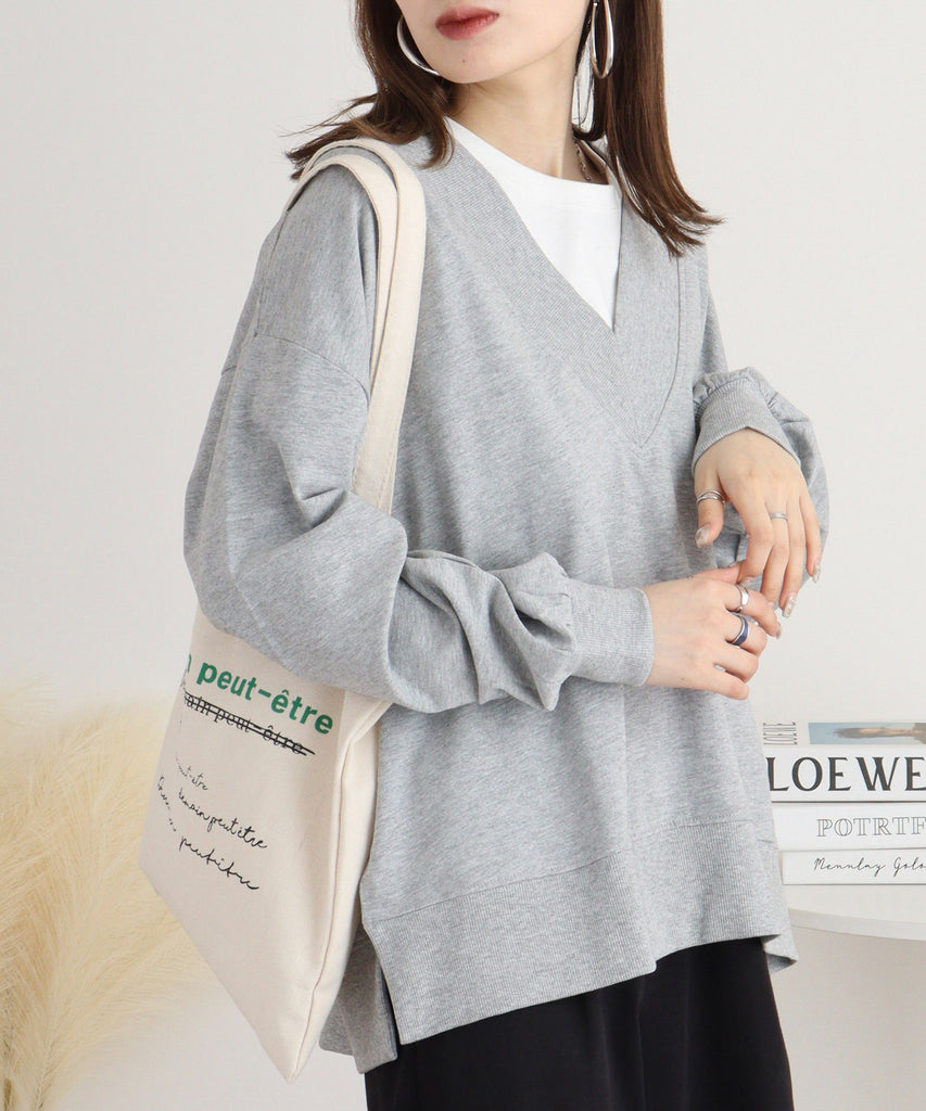 ミニ裏毛Vネックサイドスリットスウェット