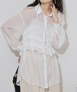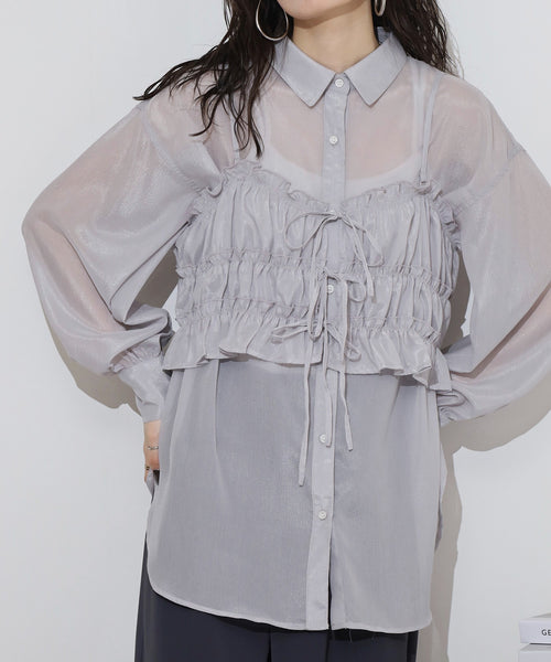 表面感のある楊柳シアー素材を使用したシャツとビスチェのセットアイテムです♪