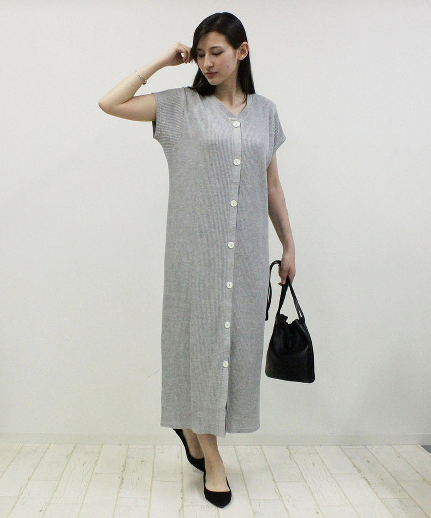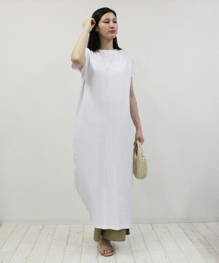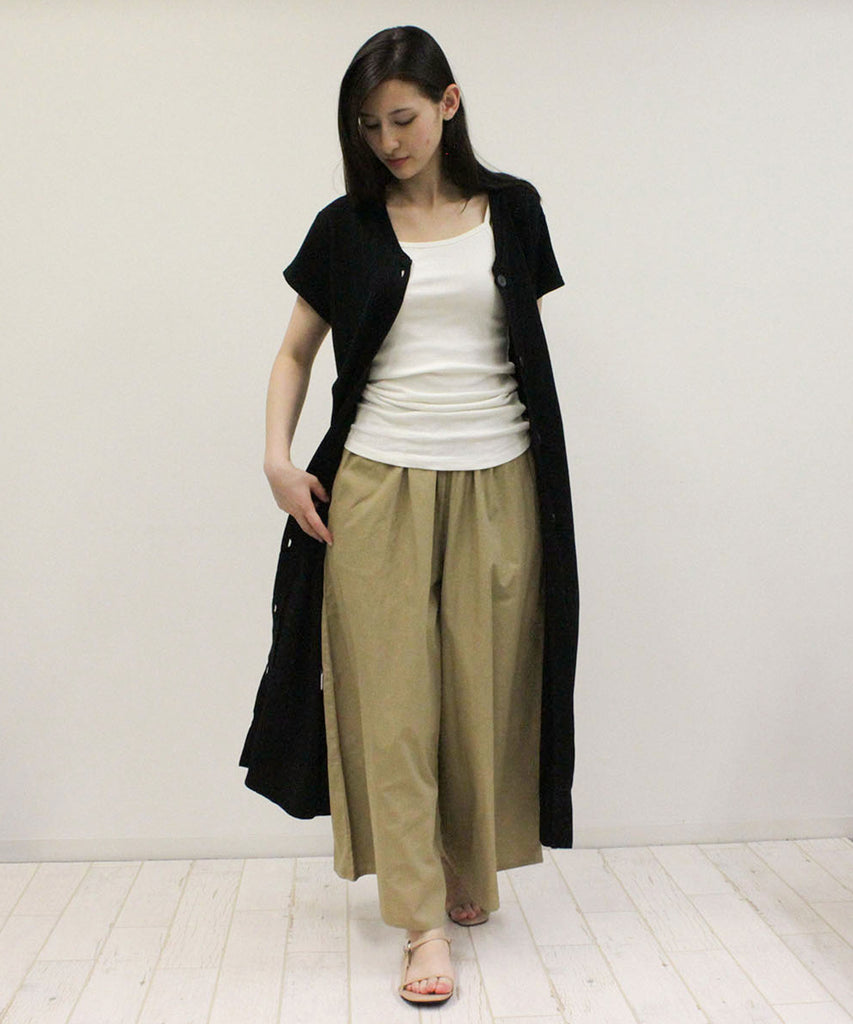 身体のラインを拾いすぎないシンプルなシルエットにさらりとした風合いの素材。