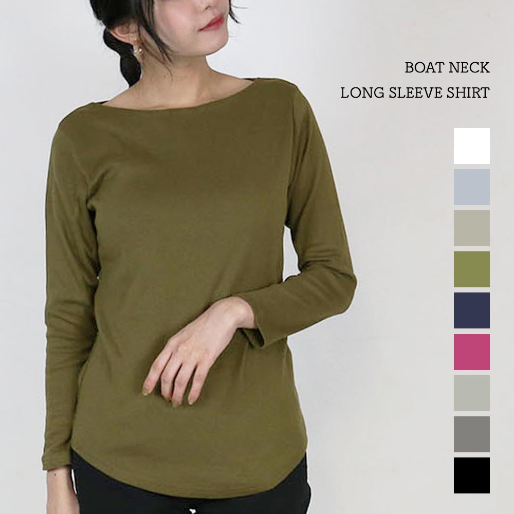 程良い開きのボートネックが首元をすっきりと 見せてくれ、女性らしさが際立つ雰囲気になります。