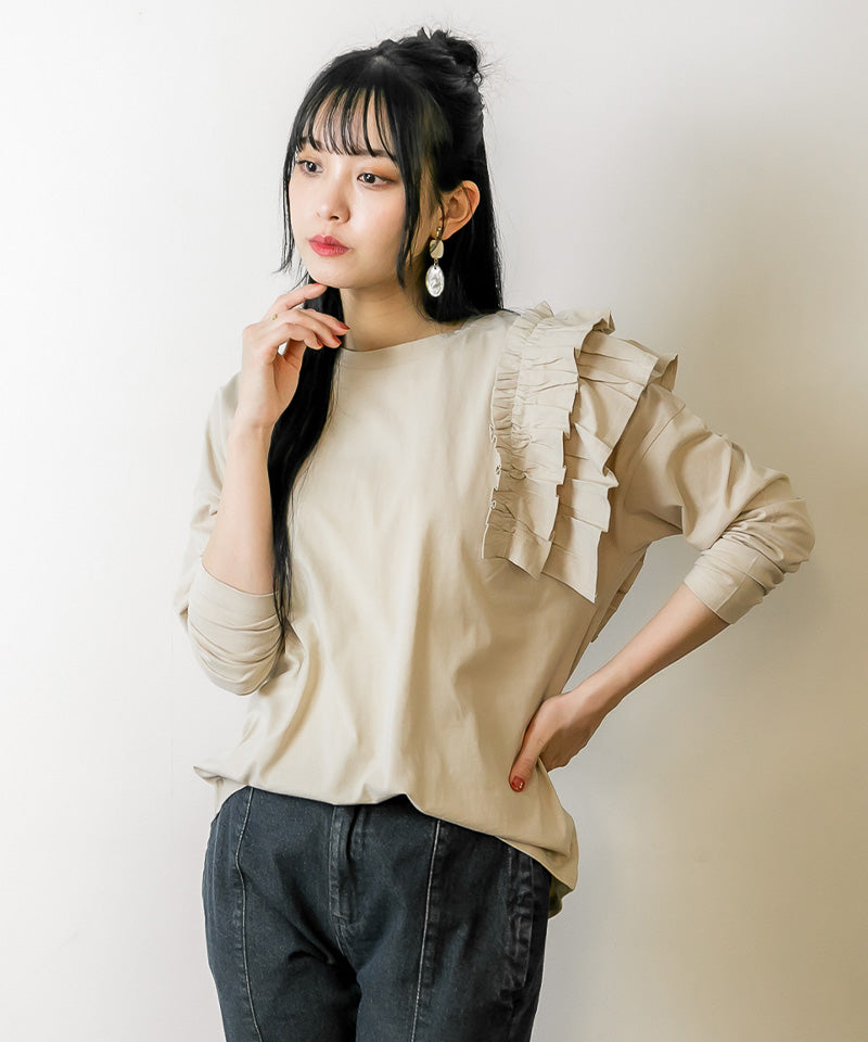 [M-Lサイズ]着丈:65cm、肩幅:63cm、身幅:55cm、裾幅:55cm、袖ぐり:19.5cm、袖丈:42cm、袖幅:19.5cm、袖口幅:10cm